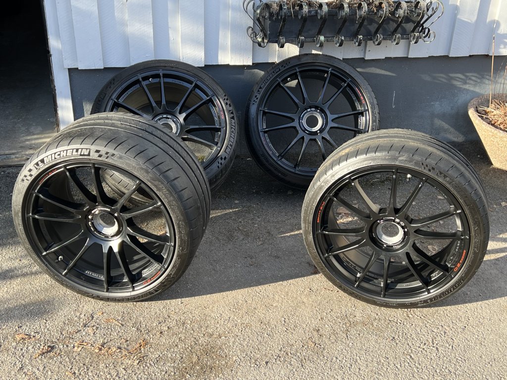 4 st OZ racing Ultraleggera HLT Centrumbult matt black i bra skick. Suttit på 991.2 Turbo S, passar säkert fler 911:or med centrumbult. - 9x20 et 55 - 12x20 et 58 Michelin pilot sport cup 2 N1 - 245/35 -20 tillverkade: 0522 - 305/30 -20 tillverkade: 5019 Körda en säsong, ca 5-6 mm kvar. Finns skavmärken på insida framfälgar, endast kosmetisk påverkan. Anders Juurinen
