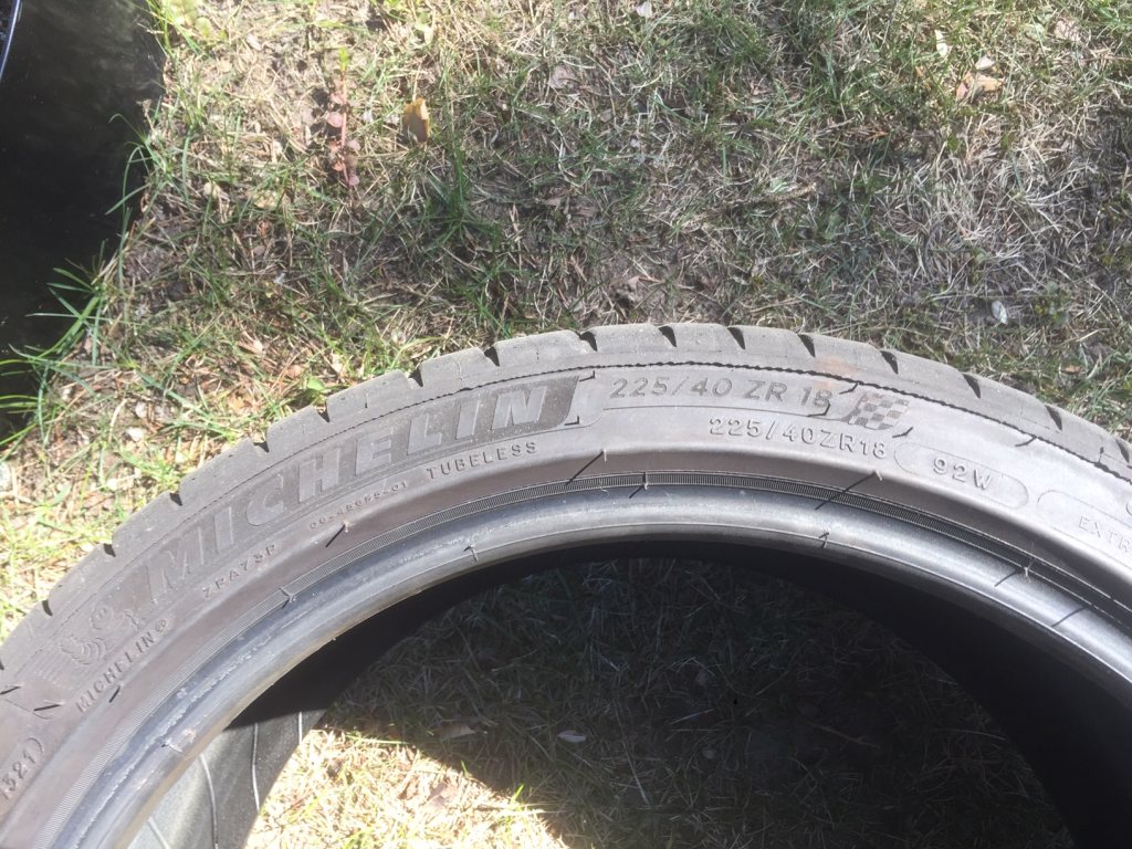 1st 225/40/18 Michelin Pilot Sport 4, tillvv13 2021, inköpt 2022, Max 500 mil, slitet på insidan (-3.1g camber) 600kr