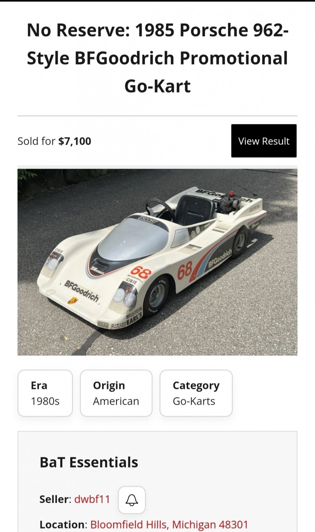 SÅLD: Porsche 962 "GoKart"/barnbil (80tal)