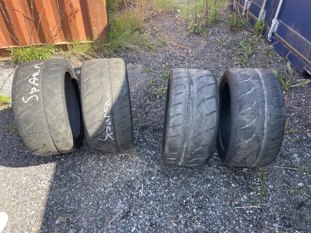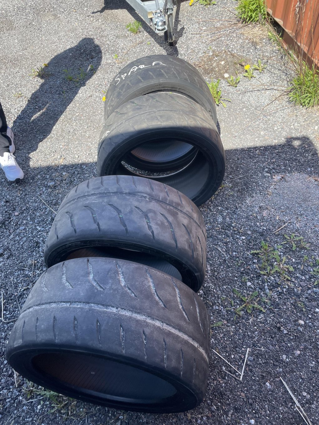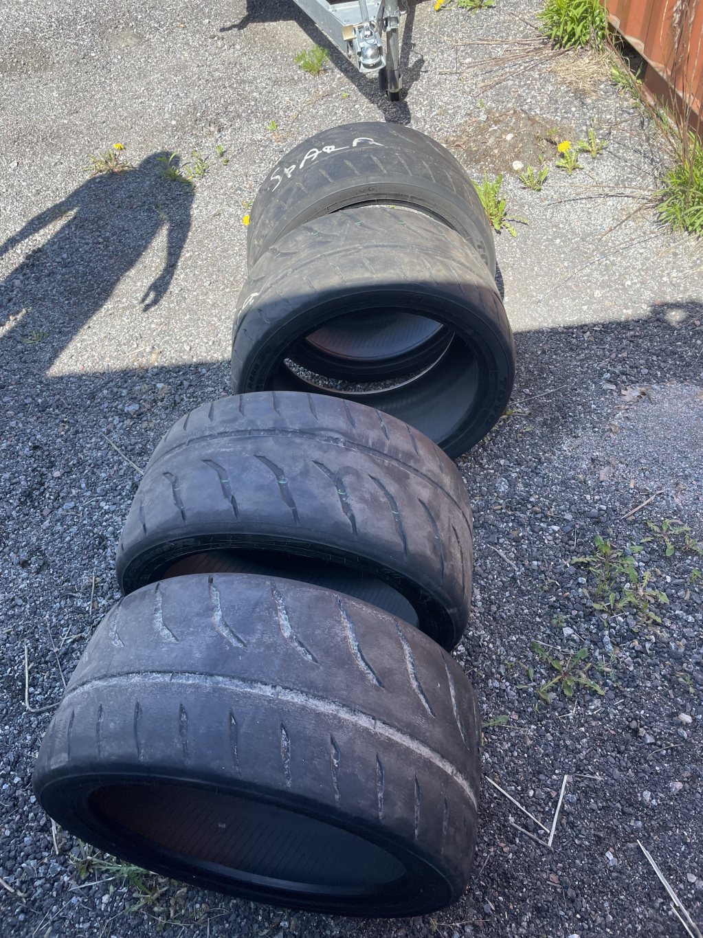 4 stycken begagnade Toyo R888R i storleken 265/35 18" i gott skick och ca 2-3,5mm kvar över hela slitagebanan. Borde hålla några bandagar beroende på hur man kör osv. Köpes nya av mig föra året.