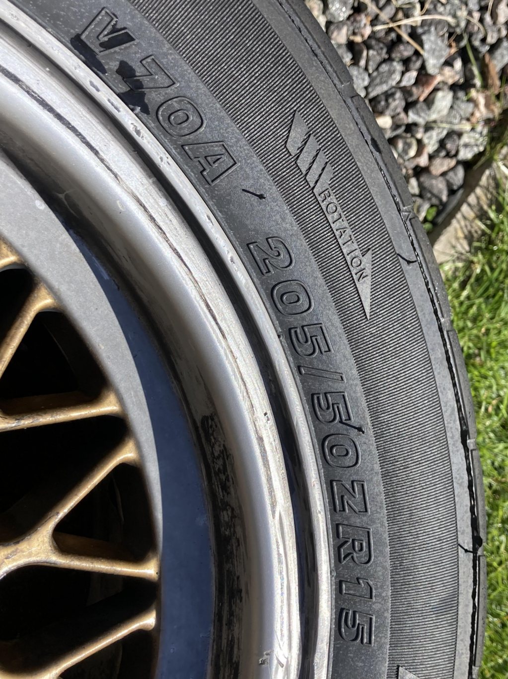 Säljes: Kumho V70A rdäck 205/50-15 på 7x15" ET20 fälg, suttit på E36 Cupbil