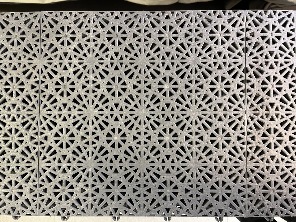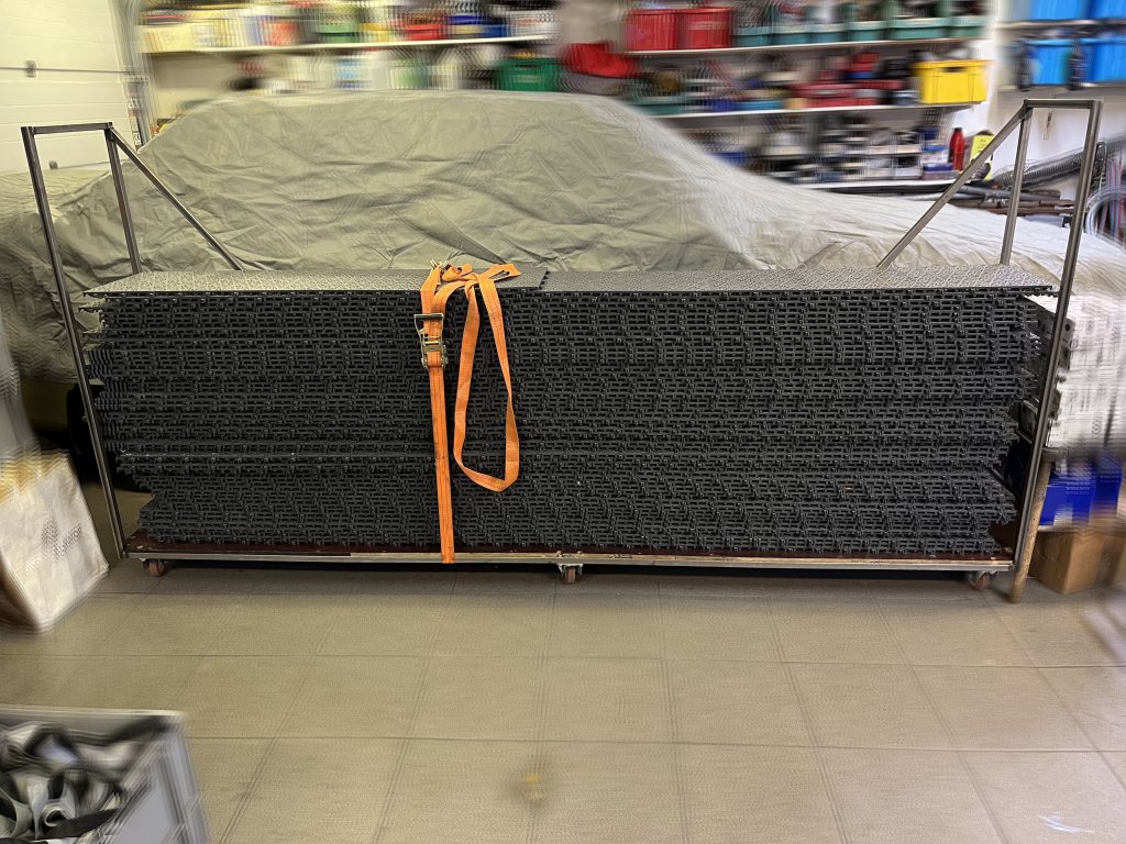 BERGO Easy click-golv. Lämpligt att användas till racingdepå, garage, terrass etc. Lätt att montera och ta isär. Färg: Antracit Antal plattor: 420st Area: 77 m2 Kantlist: 34st (m) svarta Expansionslist: 42st Detta golv har använts till racingdepå, säljes i befintligt skick. Tillbehör som medföljer: - Delningsverktyg med skaft - Vagn för att ta 416 plattor(52st remsor á 1x8 plattor) Pris: 7000kr Hör av er om ni har frågor.
