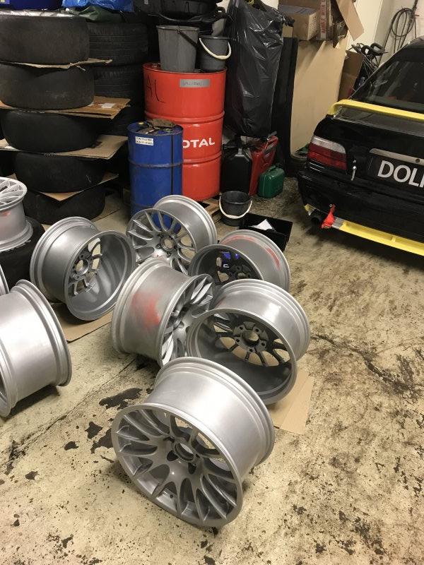 Hei For salg har jeg et sett med originale 320si WTCC hjul. Dette er samme utseende som selges via BMW som style 216, men motorsport utgaven, BBS RE1000. Produsert av BBS for BMW, brukt av danske Kristian Poulsen da han fikk 2. Plass i 2011 med Liqui Moly/Team Engstler Vekt: 9kg Storrelse: 17 Bredde: 9 Innpress: 18 Pris på disse nye var over 5000 per stykk eks. Mva. Noen merker /bulker etter bruk i racing, men de er nylakkerte og skal være rette. PS. Onsker du å bruke disse i motorsport kan vi selge ett sett til. Praktisk med regndekk og slicks. Pris 10000 NOK pr. Sett eller fornuftige bud. Martin +4793882052