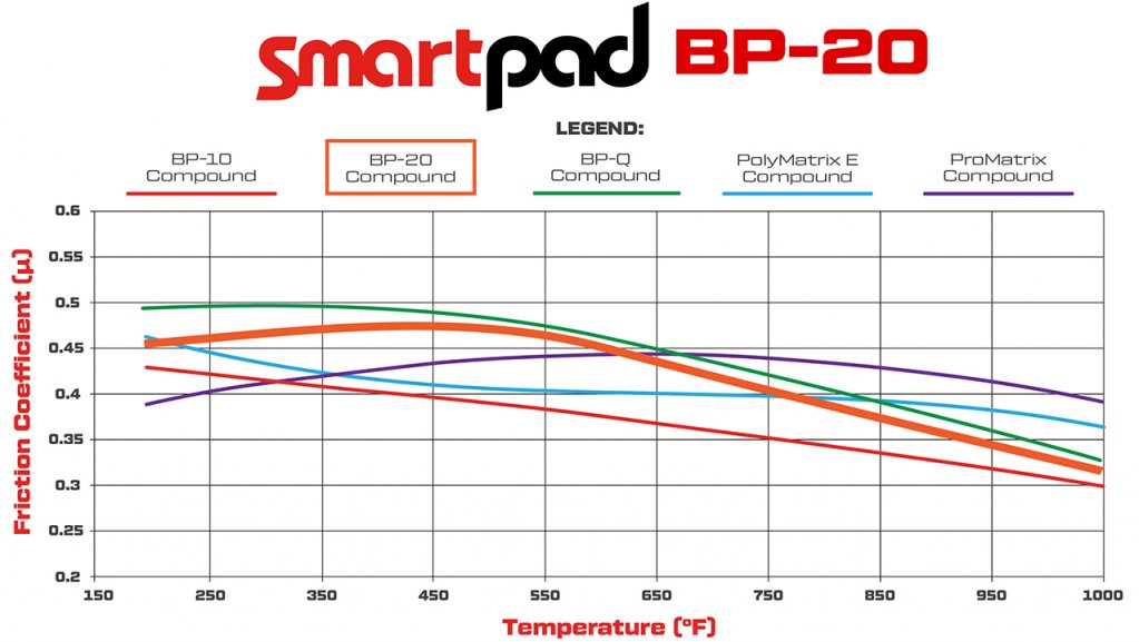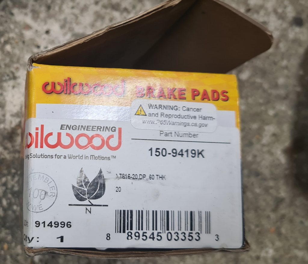 BP-20 150-9419K info: https://www.wilwood.com/brakepads/br Köptes pga bromskoeffecient vid låg temp, har lätt bil som inte bygger så mycket temp vid gatkörning eller "vanlig bana" (men på TT1 blev det hög temp)