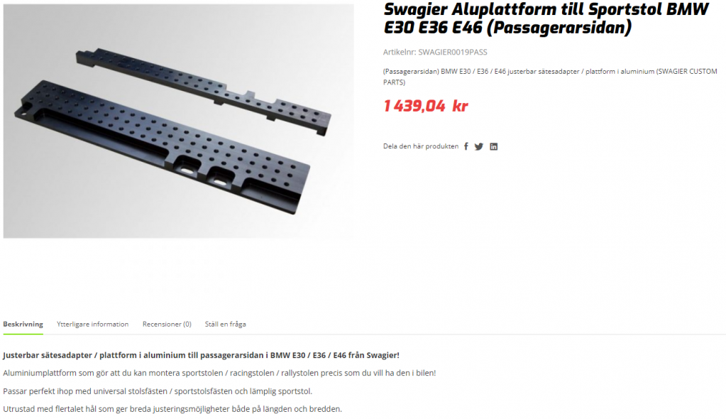 SÅLDA: Aluplattform för montering av skalstol i e30/e36/e46