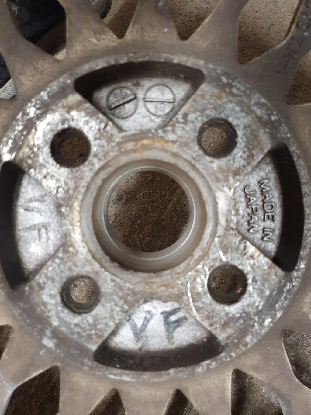 4st Enkei EK96, kompletta med centrumkåpor. 4x100, ET23, 15x7" Fälgarna är estetiskt i väldigt bra skick. En rejäl rengöring så kommer dom se som nya ut. Inga lacksläpp eller dylikt. Centrumdekalen på våfflorna är dock läge att byta ut. Dessvärre behöver muttersätena på en fälg repareras.. därav priset. 1500, Eller bud. Sett likadana gå för 8-10 000 för ett par år sen. En ovanlig fälg som skulle passa ypperligt på en gammal Opel, Golf eller BMW. Eller varför inte en Trueno? Fixar fler bilder på begäran