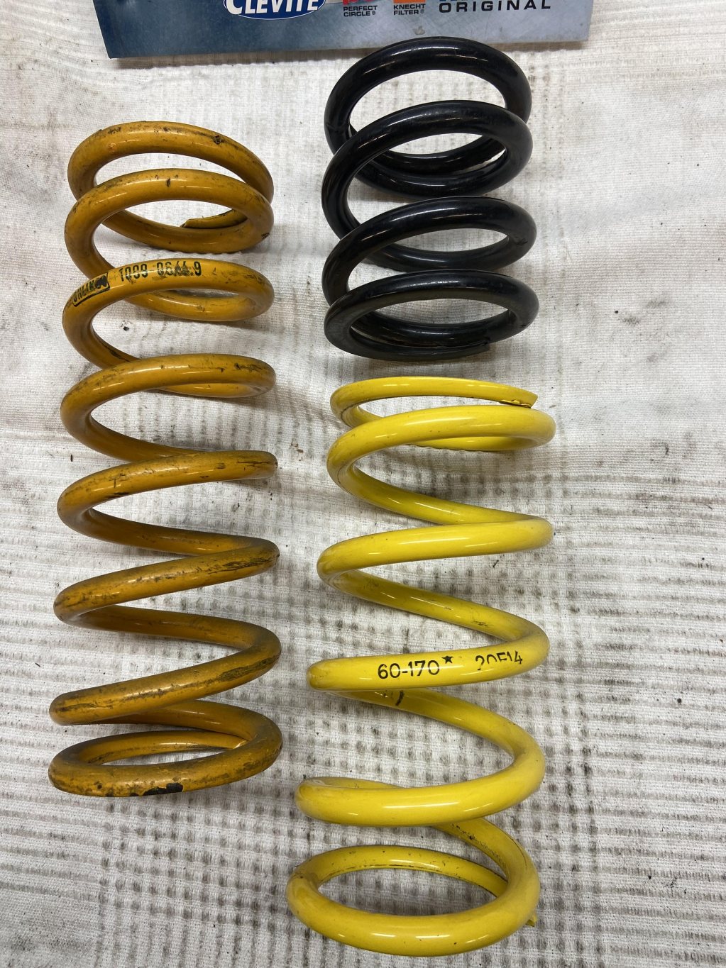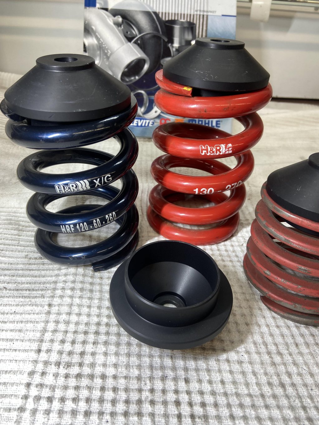 Fjädrar enligt bilder.... 250:-/st Hjälpfjädrar är 40/60/40mm ....150:-/st Har naturligtvis ett par av alla på bild. Aluhattar, har 6 st 200:-/st Peter Sandén 0706-63 46 30