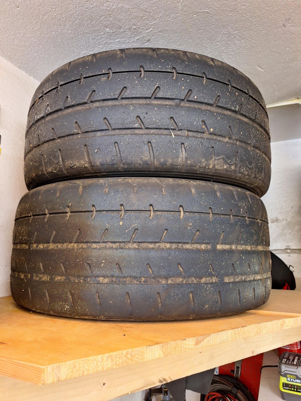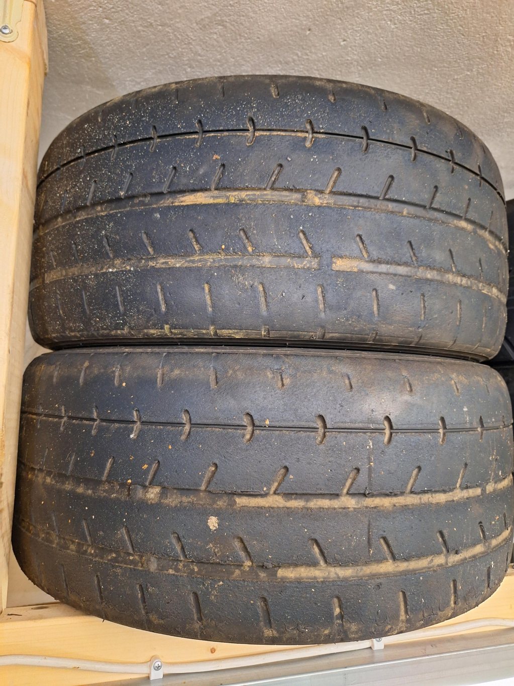 Säljer av mina beggade A052. Även dessa har gått ett gäng med bandagar och såklart heat cycles. Det finns minst ett par dagar till på 3 av dom. En av dom har bara gått en heldag på banan. (Se sista bilden) Även dessa perfekt för nån som vill testa r-däck. 4 såna här kostar runt 17/18" nu om jag inte minns fel Har ej krängt av dessa än så har du möjlighet att kränga av alla får du rabatt för det 1500kr för alla 4. Hämtas/krängas av i göteborg.