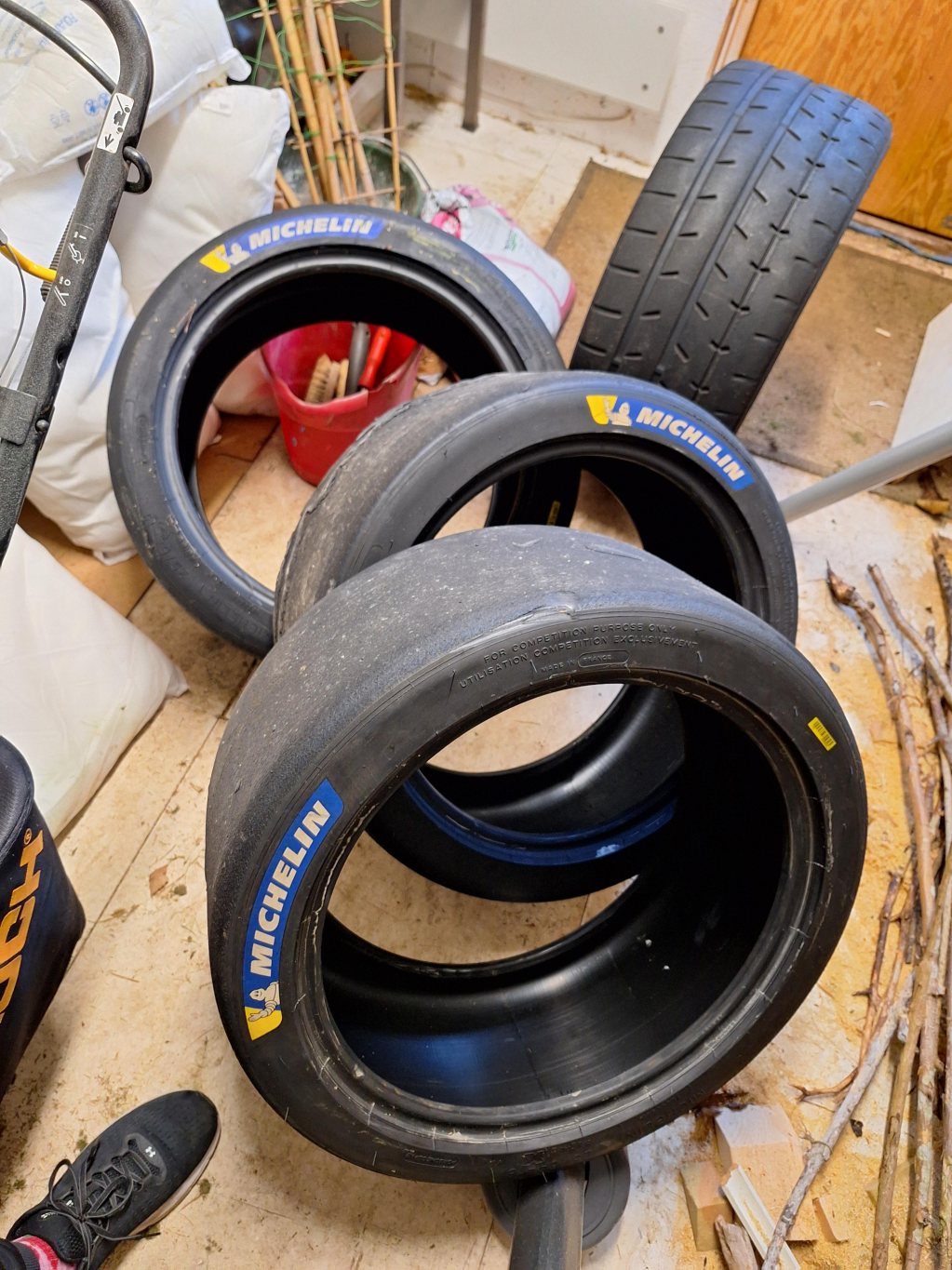 Säljer 4st beggade Muchelin Porsche Cup N2 däck. De har suttit fram på Ferrari Challenge bilarna. Trots en massa pick-up på några av däcken ser de fräscha ut i slitbanan. Det ena däcket har ett jack på kanten. Jag hade ändå tänkt köra några varv med dom men det blev aldrig av. Vill du testa slicks utan att behöva pröjsa för helt nya kan detta vara ett bra tillfälle. 500kr för alla 4. Hämtas endast i Göteborg