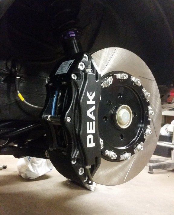 Peak bromskit fram till BMW E30, Köpta på Pean Sweden för flera år sedan. Monterade men aldrig använda. Priset avser 2st flytande 330mm skivor, 2st bromsok med belägg, adaptrar för E30 samt stålomspunna slangar. Pris: 9000:-