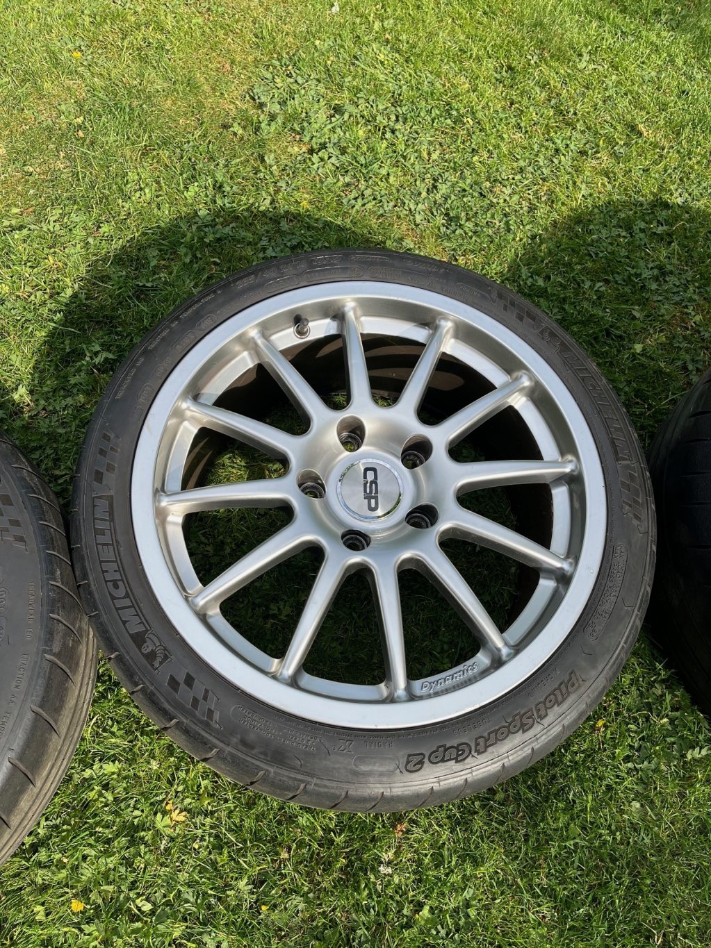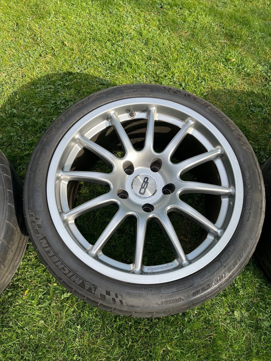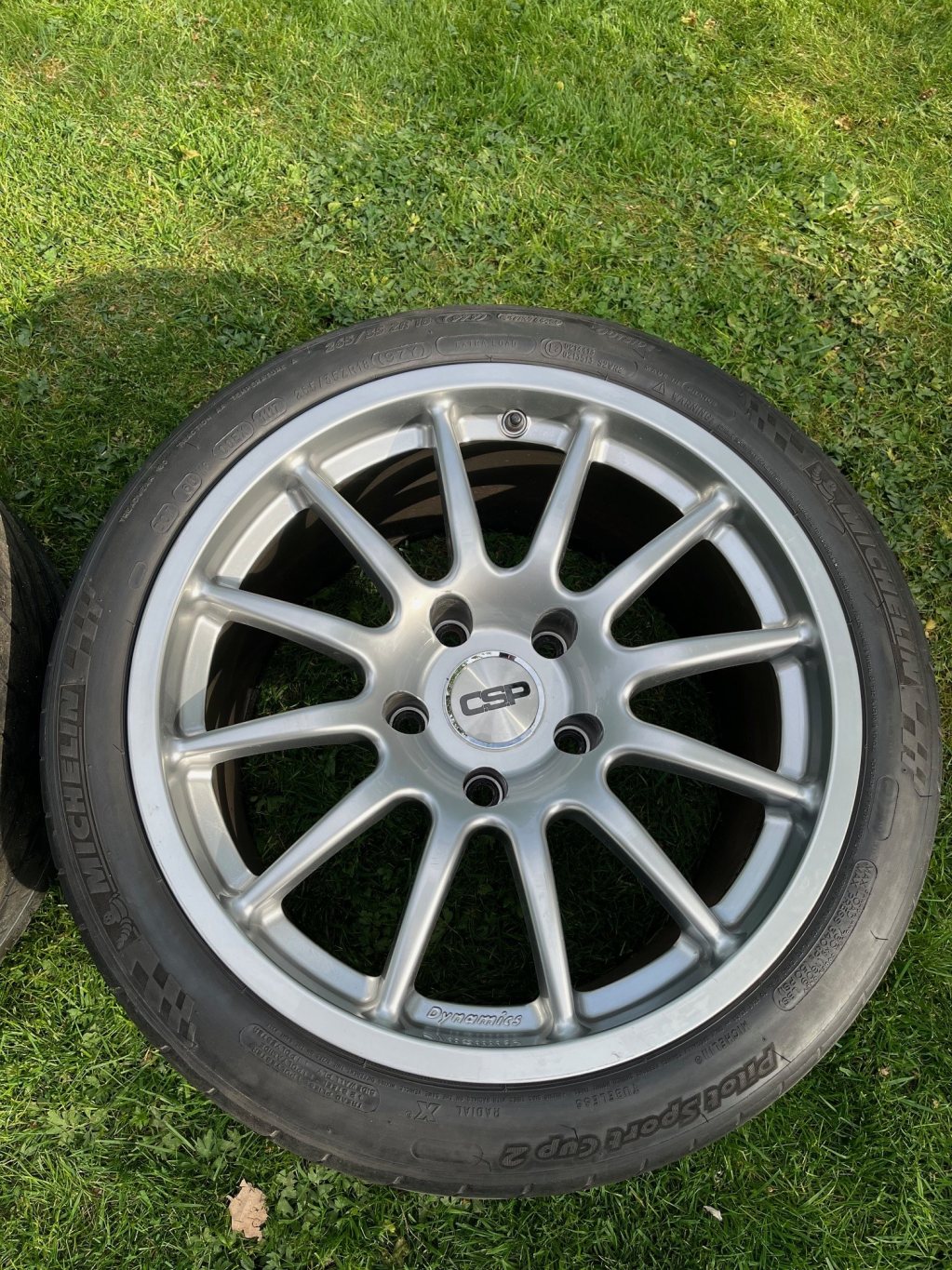 Däcken är Michelin Cup 2 med helt ok mönster, men dom är ganska gamla (-15/-16). Dock goda för 8 min tempo förra året på en gammal 986:a. Dim: 265/35 samt 235/40.