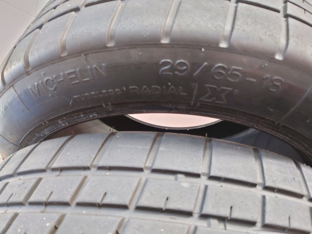 4st Michelin regndäck 29/65-18. Mönsterdjup 4-5 mm. Ett antal år gamla men ändå goda för 1,5G senast vi körde dem (oktober -23). Det är sprickbildningar på däcken och jag kan inte avgöra om det är allvarligt eller ej. Så priset är i det närmaste symboliskt på 1000 kr för alla fyra. [/u] _________________ Revline 968 GT1 Gustaf Burström. |