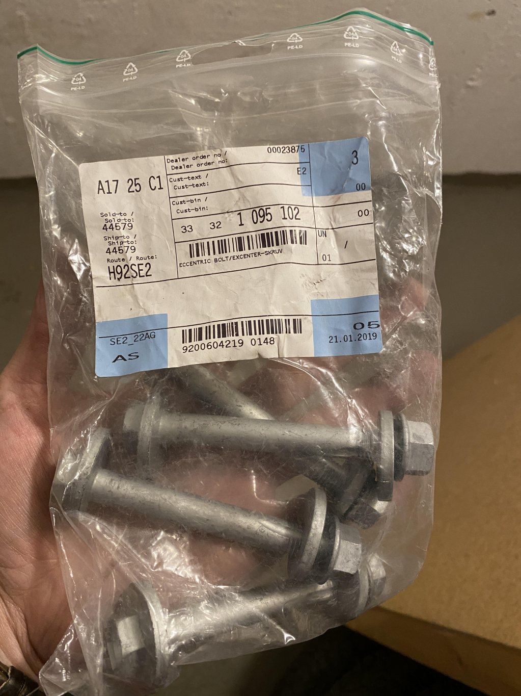 Excentriska skruvar från BMW e39 för att bygga om till justerbar camber/toe (Nypris 1220 kr) - 600 kr