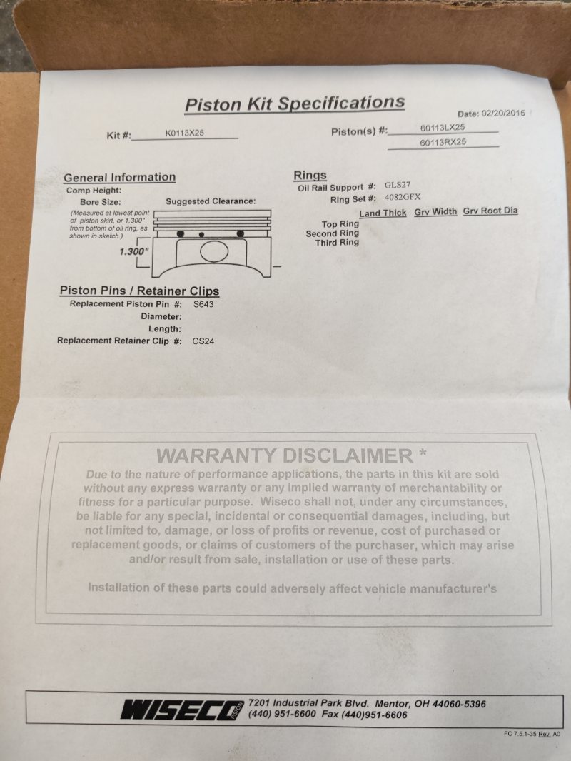 Säljer lite kolvar som inte kommer till användning. Wiseco kolvar till en Chrysler Hemi 6.1l motor. K0113X25 Chrysler 6.1L Hemi -18cc R/Dome 1.090 Ch Comp. HT. :1.0900 Bore. 4.0800 4082GFX CS 24. S643 022015/0/RK/4194 En kolv ser ut att va provmonterad. Saknas 3 kit med skrapringar men går fortfarande köpa nya. Säljes för 7500 eller bud. Finns i Kalmar men kan skickas. Intresserad? Skicka ett pm här eller sms på noll sju noll 6112044