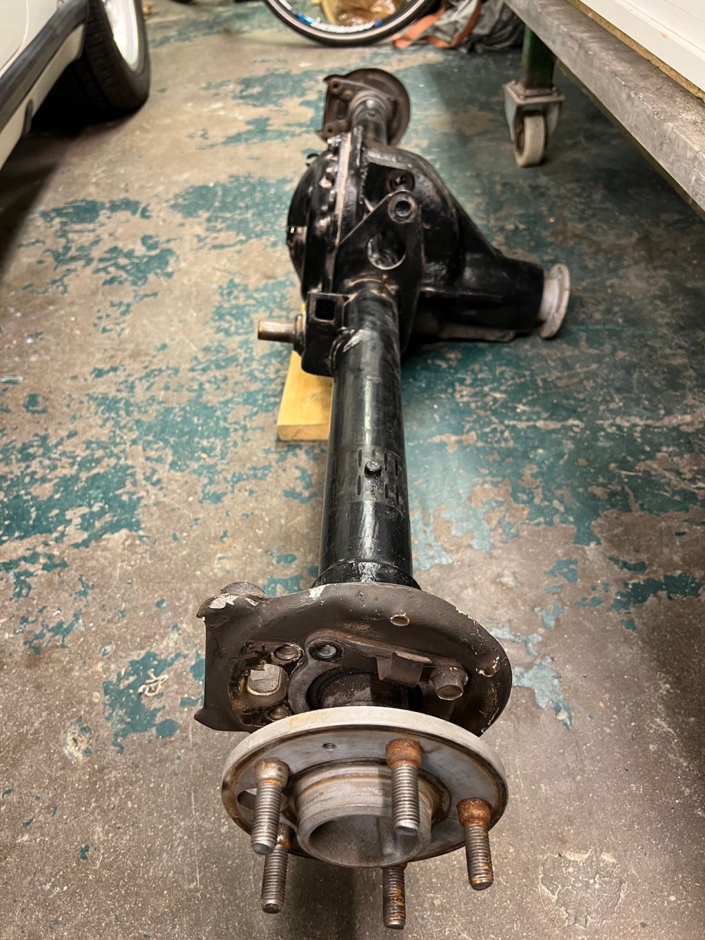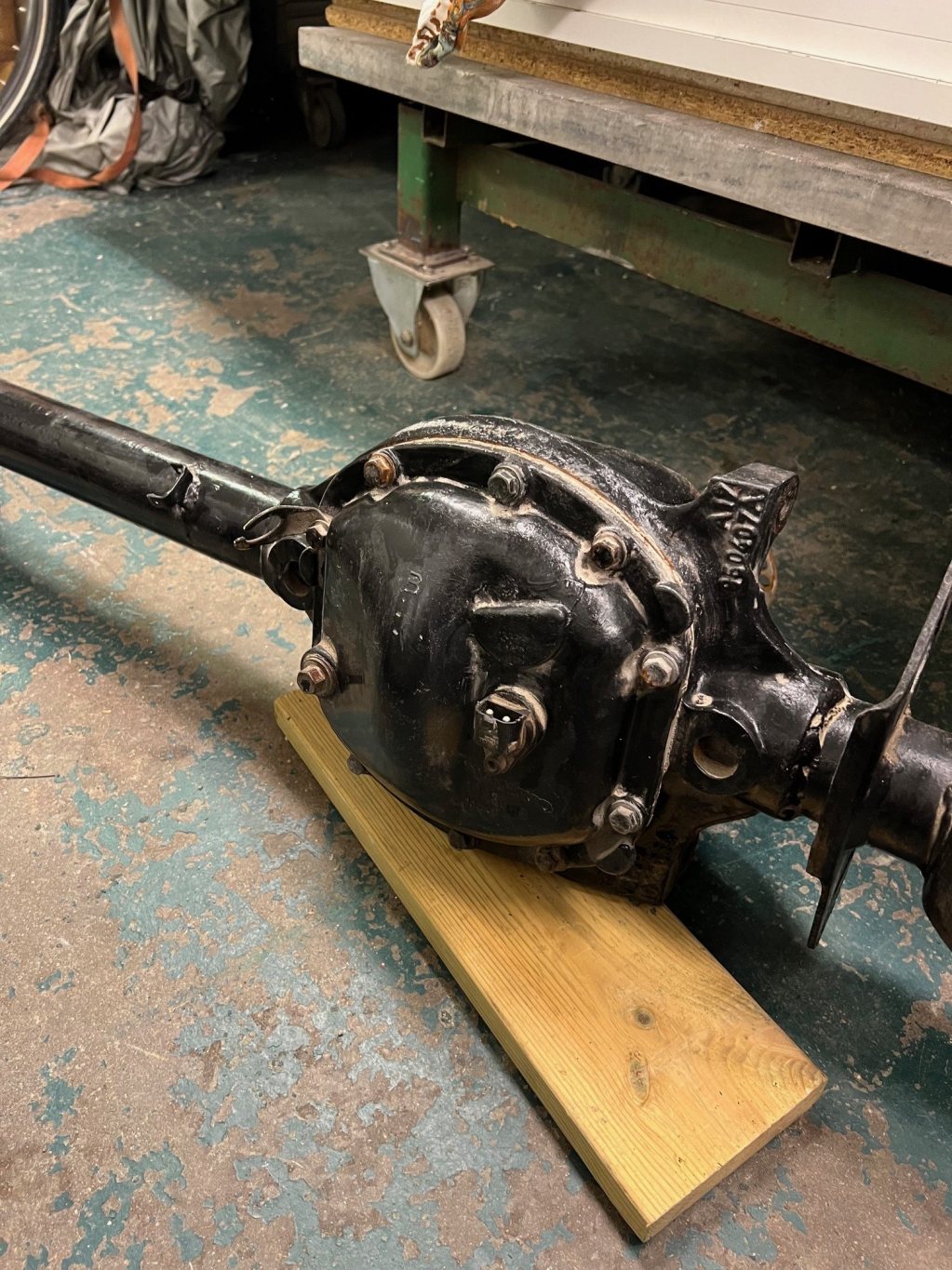 Från början en bakaxel tagen från en 940 turbo som sedan blivit isärplockad och renoverad med nya lager osv 2021. Det sitter en diff från sellholm i den som gått två säsonger på bana, totalt alltså ungefär 16 tävlingar, varav bara en säsong i den här axeln så den fick sig en översyn innan montering här i. Utväxling 4:56 som var helt ny när den sattes i 2021, gått 8 tävlingar på bana. Axeln sattes även i press för att säkerställa att den är rak och om nåt i alla fall hade lite negativ camber men inte så att det påverkar drivaxlarna. Tänkt pris 20 000kr. Det är i princip vad bara diffen kostar ny. Finns i Älvsjö, södra Stockholm