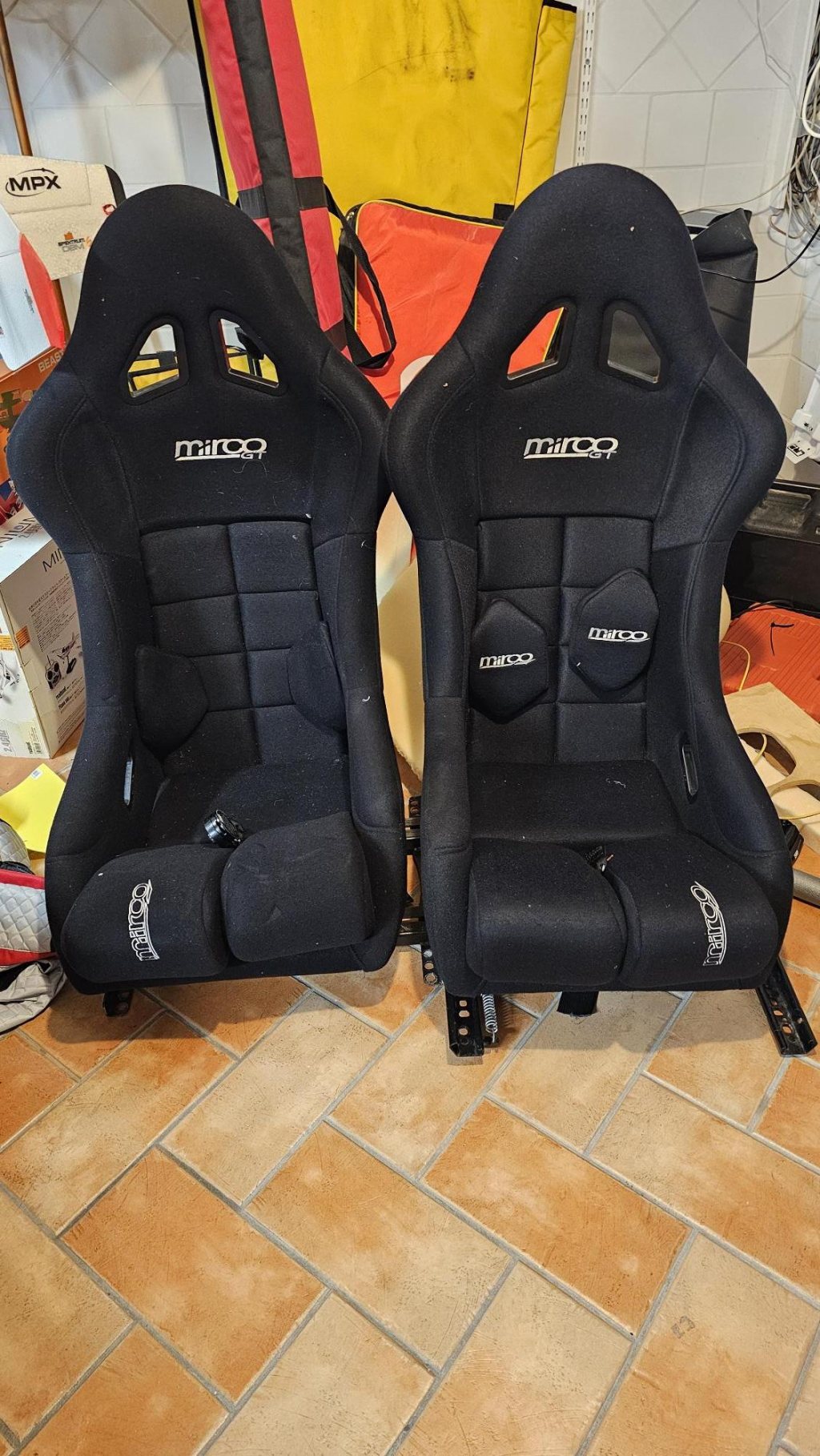 Säljer 2st Mirco GT stolar i fint skick. Fästen som passar BMW e46 m fl ingår. Förarstolens fäste kan justeras i längsled. Stolarna passar förare ca 170-185cm, 70-85kg Pris: sålda