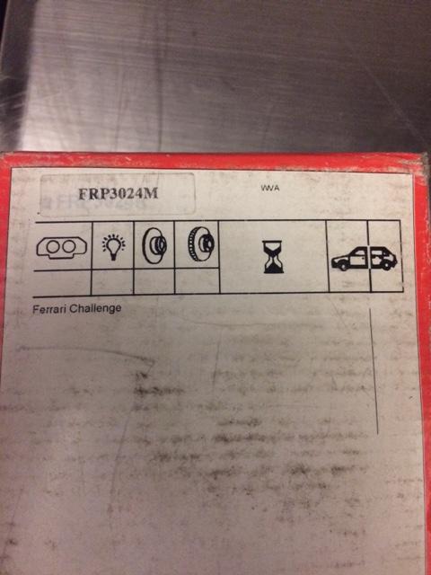 Nya Ferodo FRP3024M Ferrari Challenge belägg DS3000plus03 Passar såklart även andra bilar. Har själv kört med dom på min BMW Cup bil med Ap-ok. Finns 6st omgångar. 1500:-/omgång