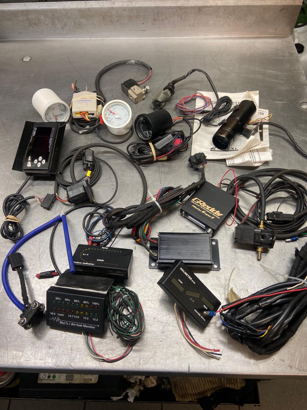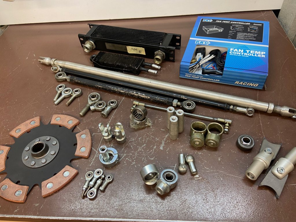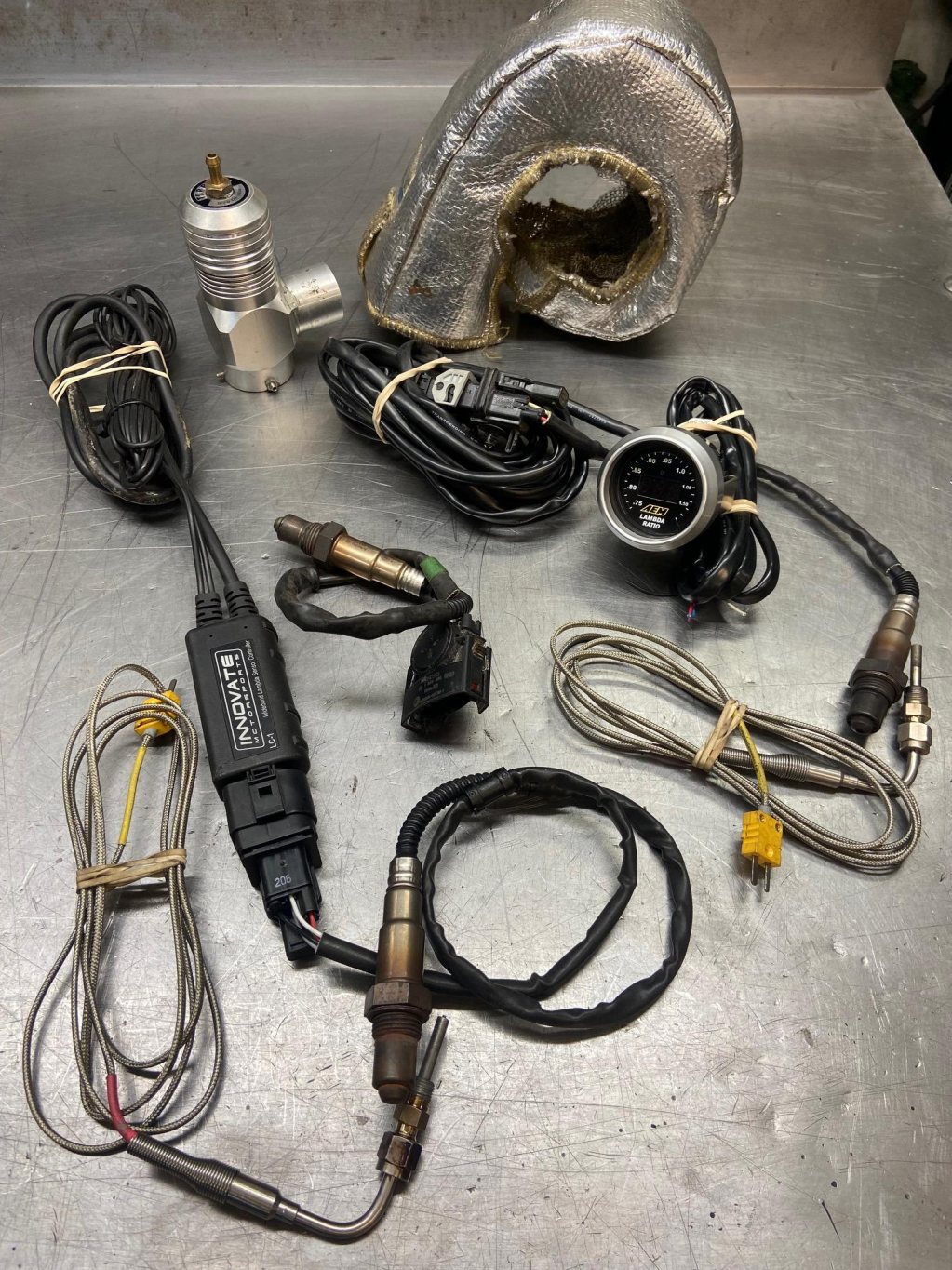 Bild1, köpa allt för 1500:-, eller om du ser nått, så hör av dig. Bild2, turbomössa fin kvalitet 600:- AEM komlett 1200:- ETG givare, nya 500:-/st enklare dumpventil 200:- Inovate 500:- lös sond 250:- Bild3, lamell 225mm centrum 1-25splines 700:- Setrab 500:- kyl servo 250:- styrning elfläktar 250:- Sats med uniball, infästningar, stag .. allt 1200:- Bild4 , 60mm fjädrar 250:-/st eloxerad alu-hattar 125:-/st /// Peter Sandén 0706-63 46 30