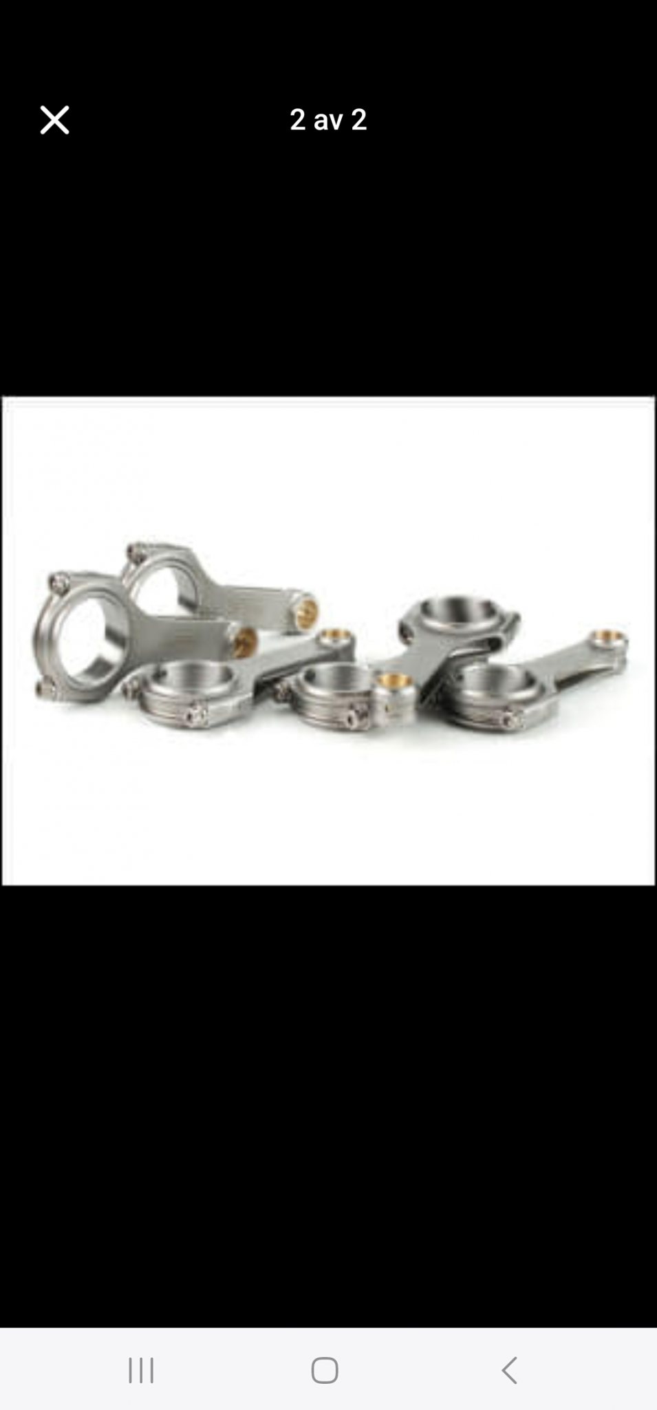 Helt nya ,oljade i försluten förpackning, Plastförpackningen är fortfarande hel, obruten Cc mått på stake är 142.5mm Storändan är 52mm Lilländan är 22mm Arp 2000 bultar sitter på Passar bara s38b38 Alltså 3.8l bmw m5 e34 Säljs bara komplett, 4800+moms för alla 6 Kan skickas med företagspaket eller privat. Köpare ombesörjer kostnaden Obs! Ena bilden är bara lånad för illustration, jag vill inte packa upp dom om inte köparen kräver det specifikt. Ring eller smsa gärna på 0707354114 /johan