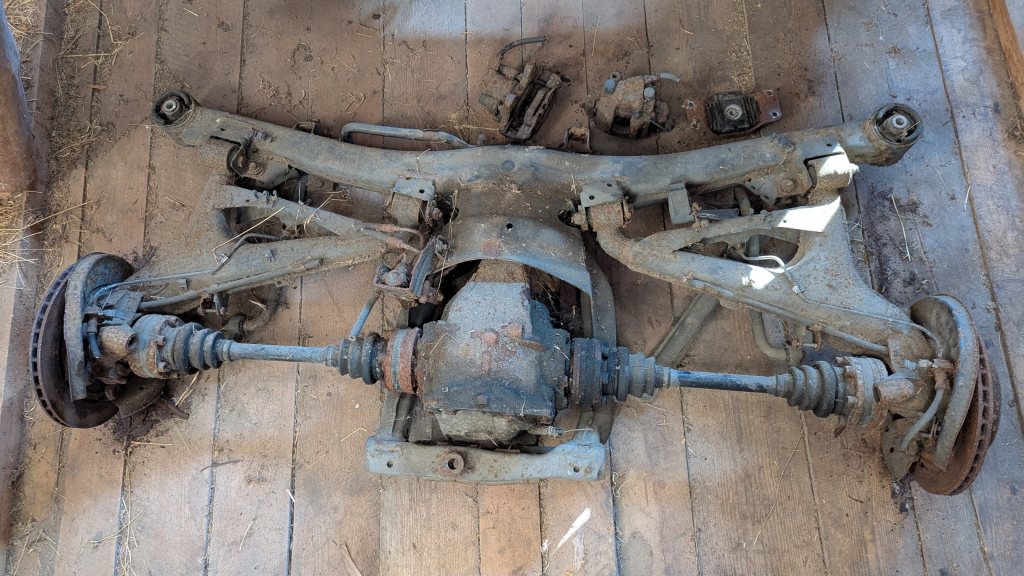 M5 E34-bakvagn komplett med bromsad diff, drivaxlar, bromsar, krängningshämmare etc. Smutsig och med viss ytrost som synes men strukturellt frisk. Köptes till ett projekt för många år sedan men har blivit över. Finns i Jönköpingstrakten.