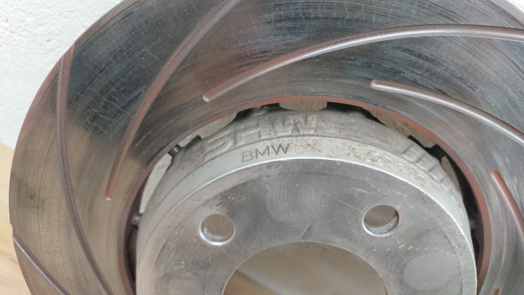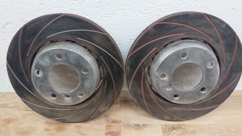 Hej! Säljer ett par främre slitsade originalskivor till BMW E36 M3 3,2. Det är varianten med aluminiumnav. Storlek 315x28mm. Nuvarande tjocklek 27,5mm (Nya 28mm, min 26,4mm). Det finns små krackeleringar på skivorna, se bilder. Skivorna är slitsade i efterhand av "Rolleslitz", rolleslitz.se Pris 1000 kr. Skickas ej, finns i Kungsbacka.