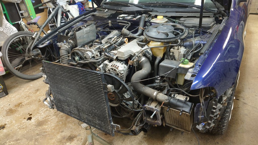 Vi har bara kommit iväg på två isbanekörningar i vinter och sist när vi var i Hörnefors, och körde på en riktigt roligt plogad bana, i slutet dagen började Audin gå på tre burkar. Nu har vi undersökt litegrann och det är olja lite varstans där det inte ska - kolvtopparna, intercoolern, insuget osv. Vi fortsätter undersökningen och beroende på vad som felet är får vi ta beslut om fortsättningen. Laga felet, riva och trimma eller byta till annan motor.