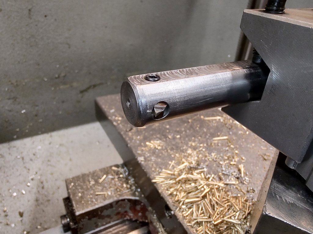 En bussning behövde ett längsgående smörjspår, så svarven fick agera kipphyvel. I med lägsta växeln, måtta in ett litet snabbstål på centrumhöjd och veva fram och tillbaka lite försiktigt.