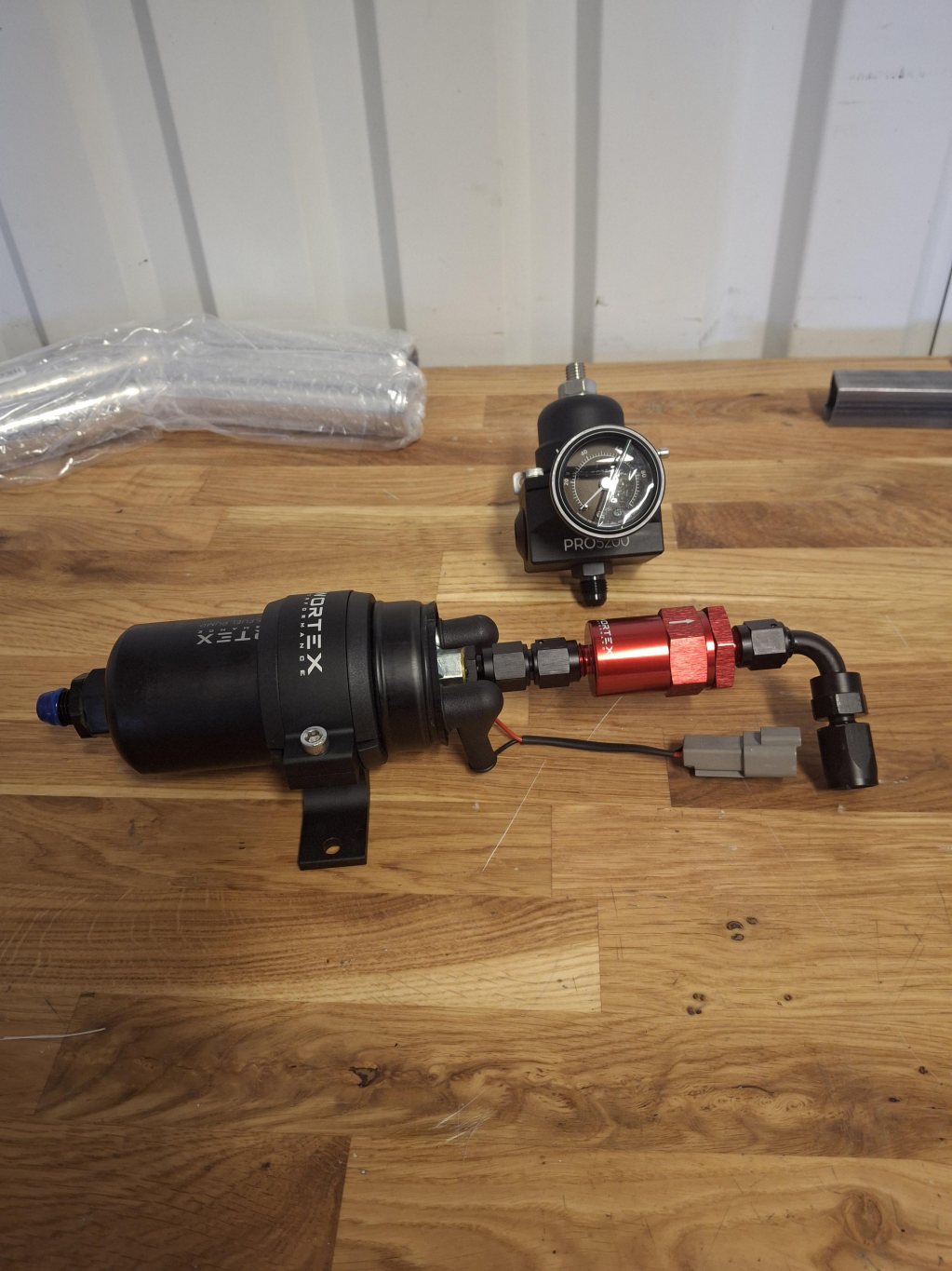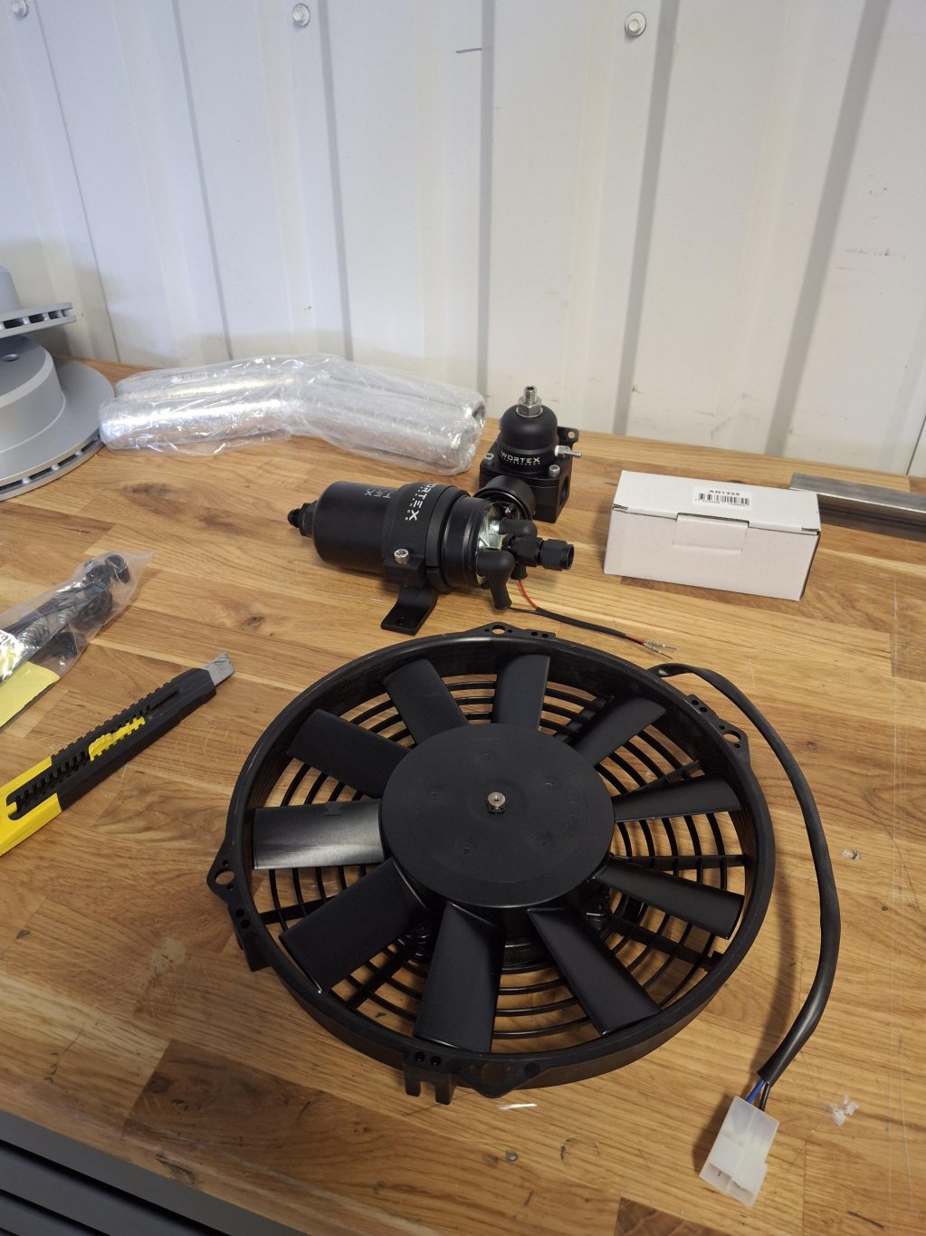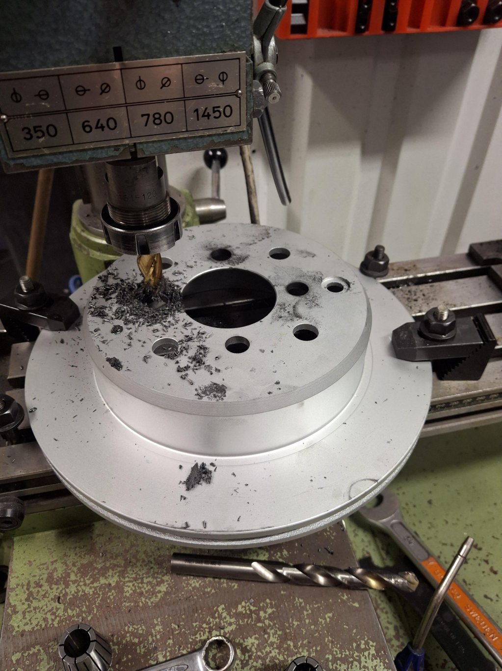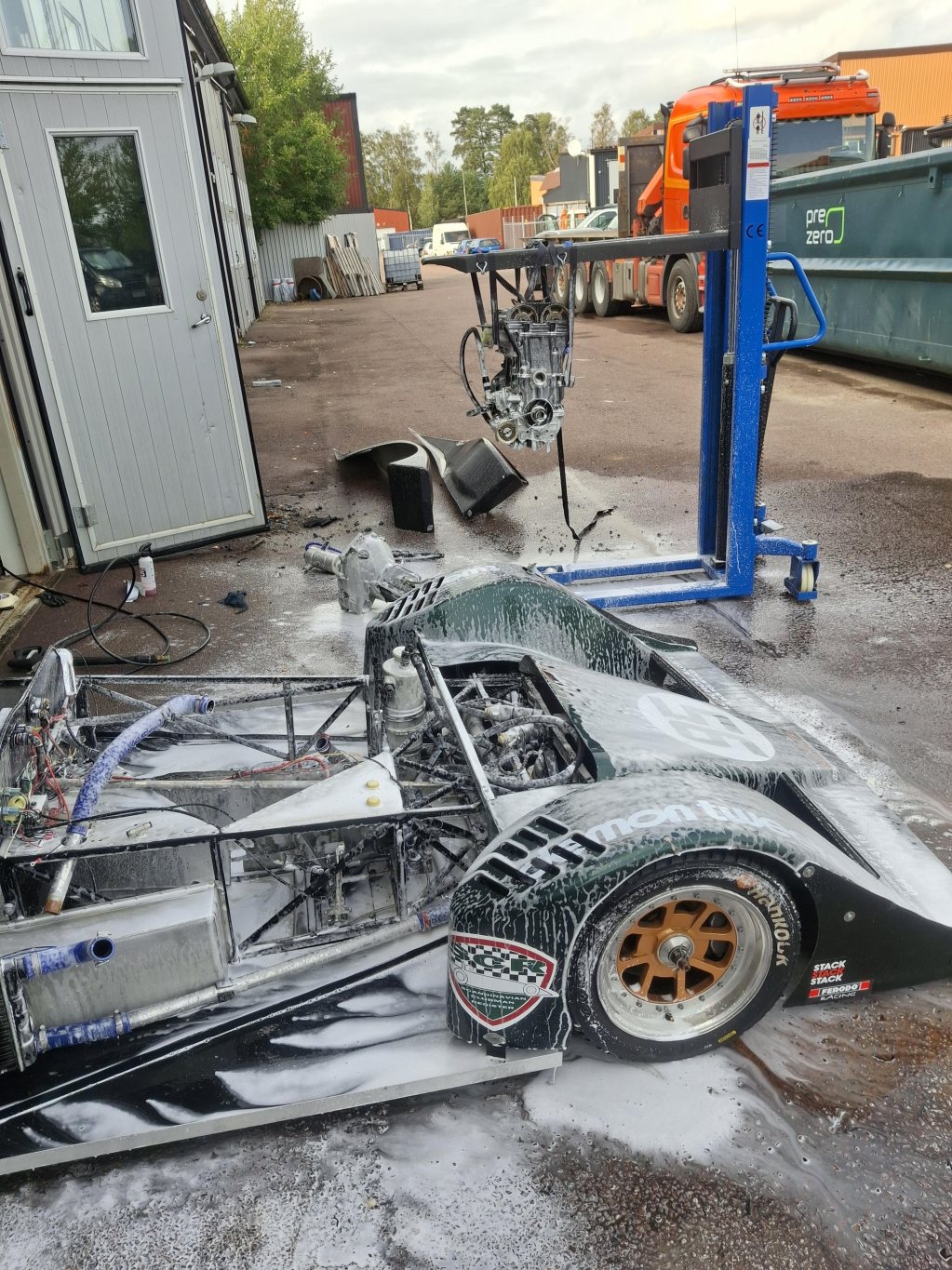 ![]() Om ni funderar på att jag gör saker lite "bakvänt" så hänger det ihop med att jag skall byta lokal snart, och vill ha bilen så komplett som möjligt tills flytten är överstökad, men samtidigt vill jag riva ur det värsta som ska till tippen/tvättas och som är grisigt och inte vänta med allt. Vintern är lång, men aldrig tillräckligt lång.. ![]() Leverans av Ventilerade skivor, som kanske kan fungera efter ett varv i fräsen. Jäkligt tunga dock så jag skall fundera några varv kring detta. ![]() Spände upp en skiva i fräsen och lyckades på något konstigt sätt fräsa upp ett nytt bultmönster som blev RÄTT ![]() Ventilerade skivan är ca 1250gr tyngre än solida, Inte upplevt bromsfade så jag kanske bara försöker förbättra något som inte behövs.. ![]() Sugande spalfläkt monterad, utöver en DT kontakt. Startar vid 95° vattentemp. ![]() ![]() Delar av nya bränslesystemet, tanken är att göra en ny tank som sitter lite längre fram, dels för att få fram vikten, men även skapa plats "bakåt" för att hela detta kitt skall monteras på bakre delen av tanken. Då kan jag lyfta ur tank+pump som en hel enhet utan att behöva tömma ur bränslet. Jo, jag stör mig på det röda filtret men svart var slut.. ![]() Lägesrapport, grenrör + främre avgasdel iväglämnat på värmecoating. Alla bultar runt sprängkåpan borta, kardan borta, hela tändsystemet+ webrar samt bränslesystem. Olja/vatten tömt. Måste renspola kylsystemet, riktigt brunt och äckligt. ![]() Skall försöka få ur lådan så den kan åka på renovering pronto. Tror motorn måste ur först, och då kan jag tvätta chassit ordentligt för att sedan byta ut hela plangolvet. ![]() Hade även tänkt att INTE byta pedalställ I vinter (som är lite rackligt) men upptäckte att kopplingspedalen är påväg att gå av i fästet ![]() Tanken att laga det med svetsen slog mig, men det är så slitet så beslutet togs snabbt att beställa ett nytt, så får vi se om det var rätt eller fel beslut ![]() Dag 2.. Vem behöver motorlyft? ![]() Det här var ett RIKTIGT grisjobb. Kletigt, oljigt, gummirester och smuts överallt. Trångt och mycket vassa kanter ![]() Motor/låda ur och jag hittade som vanligt lite mer att göra ![]() ![]() Tappade räkningen på hur många varv med högtryckstvätt det blev. Sköljde öven ur kylsystemet ![]() ![]() Nya motorn är iaf betald och skickas under veckan. Tillsammans med lite tillbehör. Ny tryckplatta/lamell/urtrampningslager beställt. Växellådan har gått iväg på renovering, väntar på information kring vilka drev som skall bytas/beställas. Jobbar på renoveringssats till oljepumpen. Ska försöka måtta fram och tillverka ett nytt främre motorfäste samt växellådsfäste, det finns förbättringspotential där ![]() Och beställa kolfiberark till att byta ut inkapslingen för förarutrymmet, lite väl otätt för stunden ![]() Ska försöka ge mig på att borra ur gamla golvet imorgon, så är nog större delen av grisjobben avklarade hastigt. ![]() Och morgondagen kom.. Borrade ur hela golvet, vilket grisjobb och lapptäcke. Notera oljan/gummit/smutsen som låg gömd längs med ramrören. Försöker ändå tvätta ordentligt efter varje rejshelg.. Känner mig lite överväldigad just nu hur bilen ser ut, men det ser nog värre ut än vad det är. ![]() ![]() ![]() Påbörjade även motorfästet, beställde delar på proforger (spännande att testa! Till både motor och växellåda. Borrade upp ett par rörstumpar och fräste ändan på dom så det är spikrakt. Gamla fästet var tungt och lappat/ombyggt. Hoppas motorn passar när jag är klar ![]() ![]() ![]() Nu ska jag försöka vila upp mig på Jobbet (50h) så jag orkar med en helg till ![]() _________________ A l e x l i n d a h l |