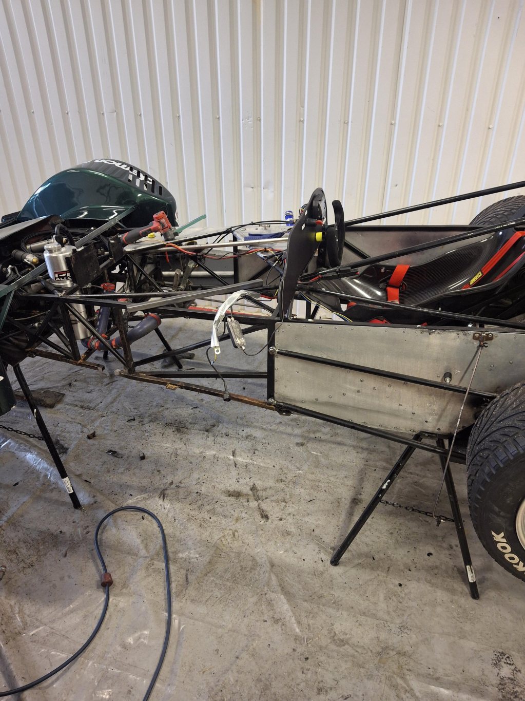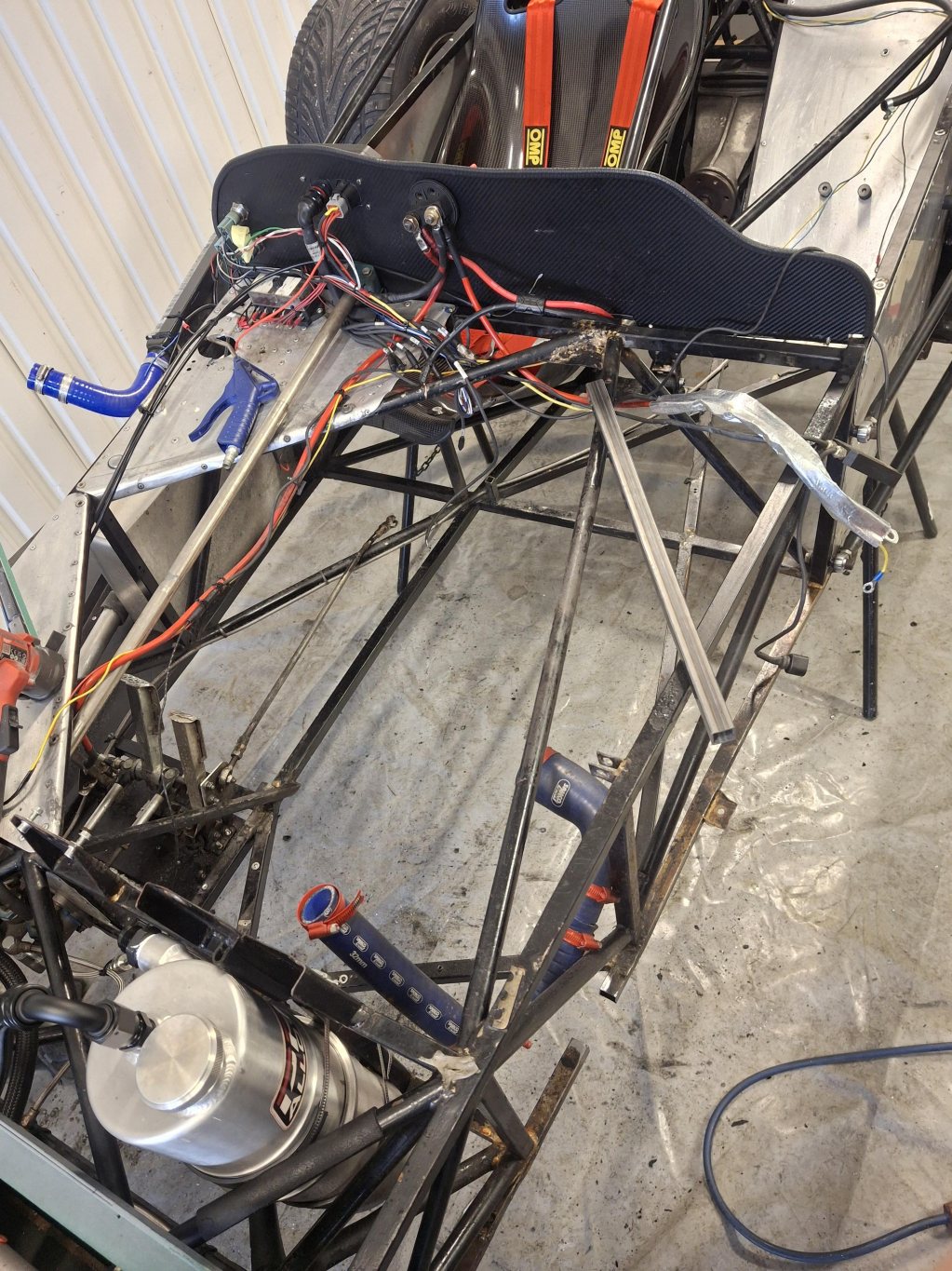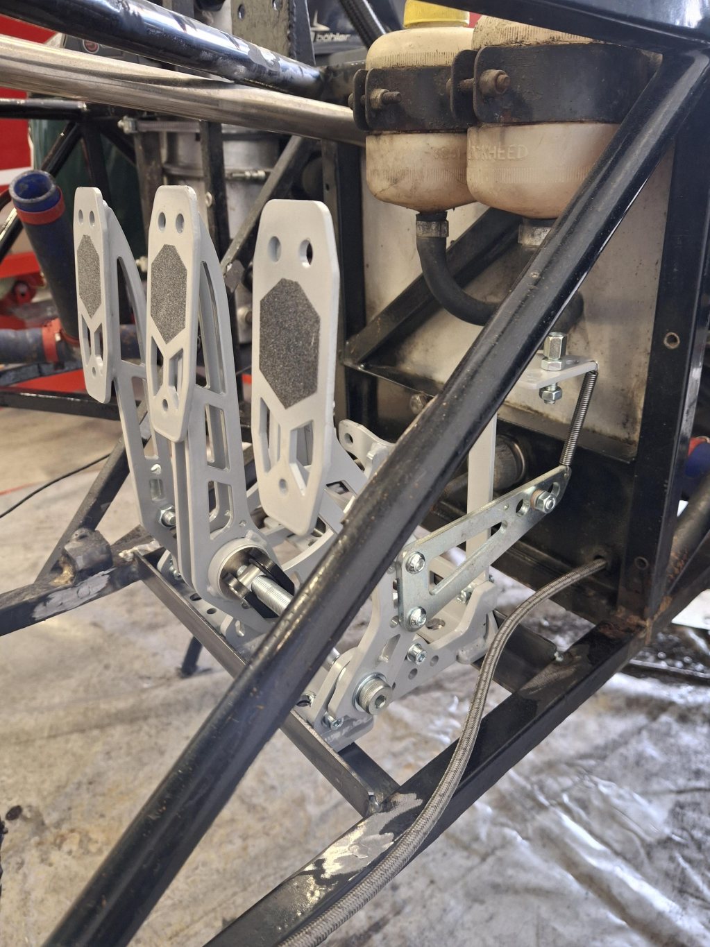 Svetsat trasigt ramrör, lagt igen hål efter hål efter hål i ramen. Sedan målade jag en hel del på vänstersidan. I princip klart för att montera nya golvet på denna sida. Svetsade i ett extra ramrör för nya bränsletanken att stå på, eftersom den byter plats. Varför den inte sitter mitt i krysset är pga att chassit är lött, och jag tigsvetsar ![]() Flyttade det gamla taffliga övre motorfästet lite framåt så den sitter över 2 rör istället för enbart ett, borde bli stadigare. ![]() Nya pedalstället verkar fungera bra. Min justerskruv till bromsvågen passade ej tyvärr men får beställa en ny. Fick flytta kopplingspedalen "inåt" för att få lite mer spelrum. Har även fått en kulled och axiallänk jag tänkte testa bygga kopplingsstag av. Tyvärr var nya pedalstället 1kg tyngre, men.. ![]() ... Det sparade jag in på mitt nya motorfäste! ![]() Proforger var riktigt smidigt, kommer säkerligen bli använt mer. Gjorde ingen jigg men lite matte och gradmätare så passar dom klockrent "i varandra" och det mesta ser korrekt ut. Slänger dock inte gamla innan motorn är monterad ![]() ![]() Pedalstället monterat, tidigare satt allt i en tunn plåt mellan ramrören, lite flexigt. Körde 2st (tunga) 25x3 vinkeljärn. Skall till ett 3e framför pedalerna som hälstöd, men hann inte så långt. Den uppmärksamme ser även att jag påbörjat att ta bort aluplåten ovan och lagt igen hål, skall bli kolfiber här strax. Hade kunnat flyttat cylindrarna och skurit bort mer plåt/vikt, men jag orkar inte iår ![]() ![]() ![]() ![]() Skall försöka svetsa det sista nästa helg, så jag kan påbörja plangolvet sen. Motorn verkar vara nära med ![]() _________________ A l e x l i n d a h l |