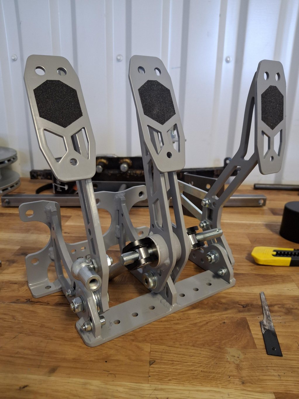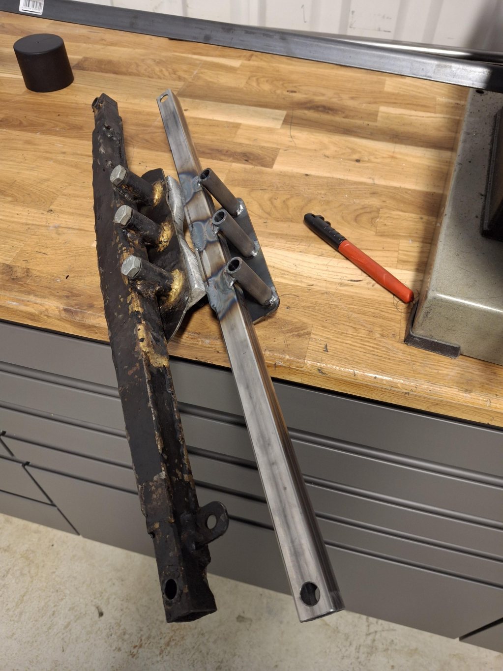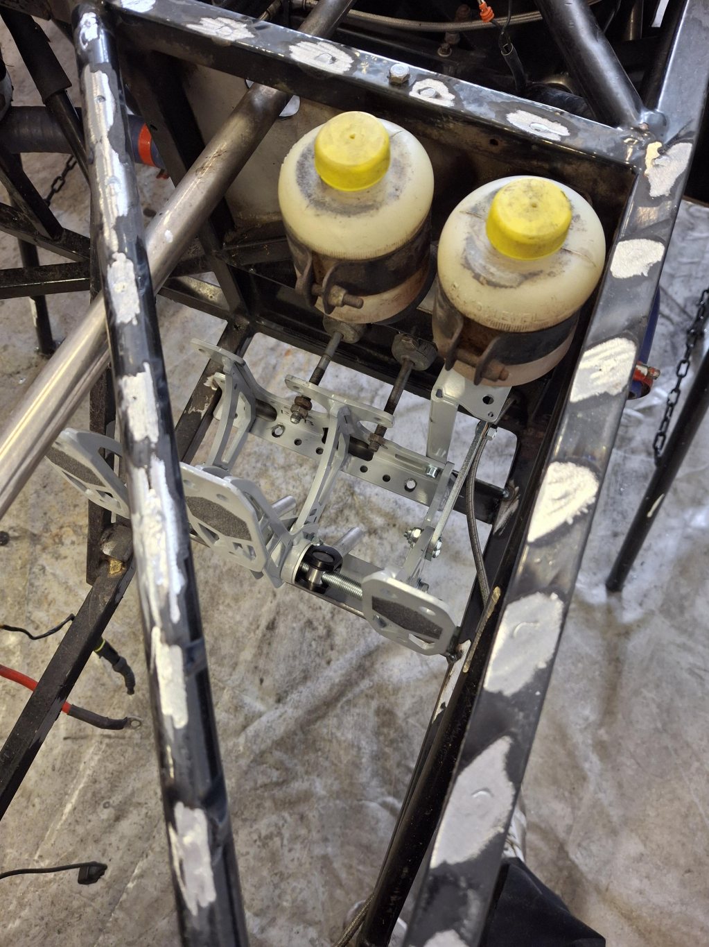 Svetsat trasigt ramrör, lagt igen hål efter hål efter hål i ramen. Sedan målade jag en hel del på vänstersidan. I princip klart för att montera nya golvet på denna sida. Svetsade i ett extra ramrör för nya bränsletanken att stå på, eftersom den byter plats. Varför den inte sitter mitt i krysset är pga att chassit är lött, och jag tigsvetsar ![]() Flyttade det gamla taffliga övre motorfästet lite framåt så den sitter över 2 rör istället för enbart ett, borde bli stadigare. ![]() Nya pedalstället verkar fungera bra. Min justerskruv till bromsvågen passade ej tyvärr men får beställa en ny. Fick flytta kopplingspedalen "inåt" för att få lite mer spelrum. Har även fått en kulled och axiallänk jag tänkte testa bygga kopplingsstag av. Tyvärr var nya pedalstället 1kg tyngre, men.. ![]() ... Det sparade jag in på mitt nya motorfäste! ![]() Proforger var riktigt smidigt, kommer säkerligen bli använt mer. Gjorde ingen jigg men lite matte och gradmätare så passar dom klockrent "i varandra" och det mesta ser korrekt ut. Slänger dock inte gamla innan motorn är monterad ![]() ![]() Pedalstället monterat, tidigare satt allt i en tunn plåt mellan ramrören, lite flexigt. Körde 2st (tunga) 25x3 vinkeljärn. Skall till ett 3e framför pedalerna som hälstöd, men hann inte så långt. Den uppmärksamme ser även att jag påbörjat att ta bort aluplåten ovan och lagt igen hål, skall bli kolfiber här strax. Hade kunnat flyttat cylindrarna och skurit bort mer plåt/vikt, men jag orkar inte iår ![]() ![]() ![]() ![]() Skall försöka svetsa det sista nästa helg, så jag kan påbörja plangolvet sen. Motorn verkar vara nära med ![]() _________________ A l e x l i n d a h l |