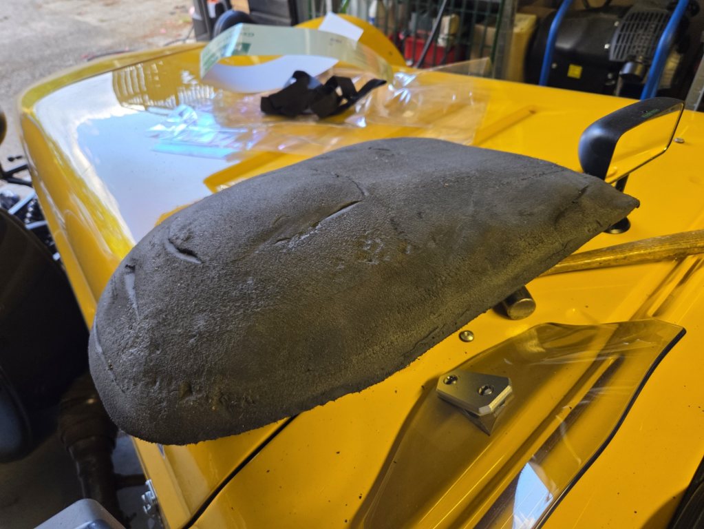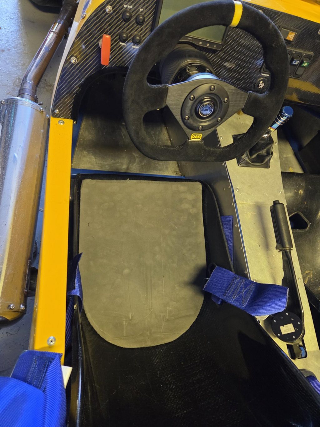 Saker man gör. Familjemedlemmar är längdmässigt utmanade, hustrun ser inte upp över huven och övningsköraren vill nog ha lite mer överblick. Så då köper man ett liggunderlag på Jula, spraylimmar ihop några lager och täljer fram en form som passar i stolen. Nu kan hela familjen köra Lilla Gul. Väntar bara på att de ska våga göra det också.