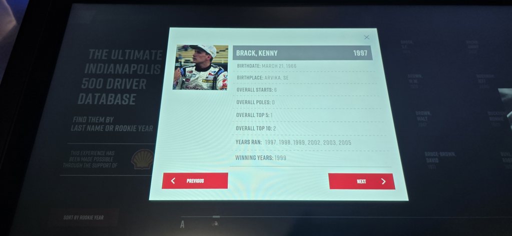 ![]() men istället konsulterades hotels.com, ett hotell hittades, några timmars billkörning senare fick jag ett rum på ett hotell (näst billigast på resan, utan skumma typer som hängde utanför!). ![]() Minibaren var välfylld ![]() men eftersom jag är väluppfostrad vet jag bättre än att ta därifrån. Istället en bra kvällsmat på Picanha: ![]() Och en promenad i kvarteret för att titta till fordonslivet: ![]() ![]() Förhoppningen om en bra frukost visade sig vara just det, en förhoppning. Så iväg till nästa grej: ![]() ![]() Jag är ju lite skum, så jag fastnar för detaljer snarare än helhet. Var sitter bromsarna? ![]() En Texaco-bil! ![]() Får man inte plats med hjulupphängningen under karossen så löser man problemet. Precis som motorn på Påffe. ![]() ![]() En Lotus! Typ en så jag har, i min fantasi... Men något verkar lite konstigt? ![]() ![]() ![]() Tre "bilar" och en stor skärm som går upp i taket, tillsammans med en hejdundrande ljudanläggning. ![]() Snacka om att bygga upp spänning och show, bara att stå där och titta på filmen som kördes varje kvart fick håren på armarna att resa sig. Det var antingen ljudanläggningen eller AC's om gjorde det. Mer detaljer från en Indy (Indiana Jones???). ![]() ![]() ![]() Soom sagt, fastnar för detaljer... När jag stod och tittade på bakre krängaren så kom en som jobbade fram och sa: ![]() "-I see you're looking at the car really intently, can I help you with anything" "-I'm curious on the rear anti roll bar and how it works." "-Yeah, you see the driver controls things from the steering wheel and have to adjust things all the time, to change things into a corner, out of a corner and on the straights. So adjusting the car is a full time job in itself, and then you got to drive it. REALLY COMPLEX!" "-But how does it work?" "-a.s,kdnaldnalsdnalsknde " ![]() ![]() ![]() En blå bil... ![]() När teamet satt kvällen innan Indy500 tror jag de tänkte ungefär så här: "-Vi har en bra bil, men en bil som inte är så snabb.. vad ska vi göra?" "-Jag har en ide!!!" "-Men fram med det då, vad är det för ide???" "-TÖJBO!!!" ![]() ![]() ![]() Hjälmar från Indy500-vinnare, gamla är välputsade och nyare är direkt från banan. ![]() ![]() Balla bilar! ![]() ![]() ![]() ![]() Är det risktillägg på detta? ![]() ![]() När teamet satt kvällen innan Indy500 tror jag de tänkte ungefär så här: "-Vi har en bra bil, men en bil som inte är så snabb.. vad ska vi göra?" "-Jag har en ide!!!" "-Men fram med det då, vad är det för ide???" "-TÖJBO!!!" ![]() ![]() När teamen satt kvällen innan Indy500 tror jag de tänkte ungefär så här: "-Vi har en bra bil, men en bil som inte kommer så långt för den har för liten soppatank.. vad ska vi göra?" "-Jag har en ide!!!" "-Men fram med det då, vad är det för ide???" "-SOPPATANK UNDER GRENRÖRET!!!" "-Är det verkligen en bra ide?" "-Just do it!!!" ![]() ![]() ![]() Två kvällar när jag zappade genom tv-kanalerna på hotellen visade de en välgjord dokumentär om Nascar, Talladega nights. Den kan jag rekommendera för en inblick i en hårt arbetande Nascar-förares liv. ![]() ![]() När teamet satt kvällen innan Indy500 och drack Miller Lite tror jag de tänkte ungefär så här: "-Vi har en bra bil, men en bil som inte är så snabb.. vad ska vi göra?" "-Jag har en ide!!!" "-Men fram med det då, vad är det för ide???" "-TÖJBO!!!" ![]() ![]() "-Men växellådan klarar inte det, den behöver kylning!" "-Vi sätter dit en oljekylare, plättlätt!" "-Men det finss ingen plats, och vi måste skydda den mot skräp som flyger omkring..." "-JUST DO IT!" ![]() Föraroveraller genom tiderna, från dåtid till nutid: ![]() Någon slags pokal... ![]() ![]() ![]() Överallt letade jag efter en svensk anknytning, men det fanns varken hjälm, overall eller bil. Det enda jag hittade var en skärm där alla Indy500-vinnarna genom tiderna fanns i alfabetisk ordning. Så det enda svenska: ![]() ![]() Väl utanför dörren fick jag en käftsmäll, en riktig en... Morgonen var sval, museet led av väl fungerande AC så när jag klev ut så var det VARMT. Så där varmt som tar andan ur en. ![]() ![]() Sen var det bara att trycka på knappen D och köra ett gäng timmar, sen ännu mer timmar i flygplan. ![]() _________________ Mvh /Marcus I garaget: Påffe 944 & Martini Seven |