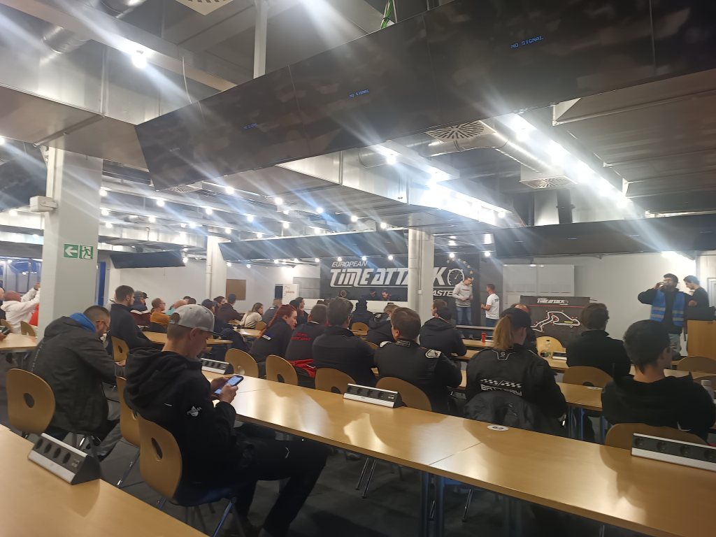 Förarmötet gick smidigt. Det är ju en riktigt imponerande anläggning de har där. Långa rader av bord och alla rader har en egen rad med monitorer i taket som det visas info på. Mäktigt! Hela anläggningen är rätt ball för oss småfolk från Sverige. Förra gången jag var där hade vi mötet i ett garage. Detta var lite mer mindblowing! Teamet gjorde klart i boxen efter ett mindre inbrott. Karel hade nämligen nyckeln och hade försovit sig... När jag kom ner efter mötet satt däckvärmarna på och allt var redo. Jag kör ju alltid själv annars. Jag känner lika mycket folk som Dominic Torretto, men verkar vara lika intressant att hjälpa som Ove Sundberg Skämt åsido, så var det guld värt med hjälpreda i boxen. Vi var lite halvcoola i likadana jackor också.