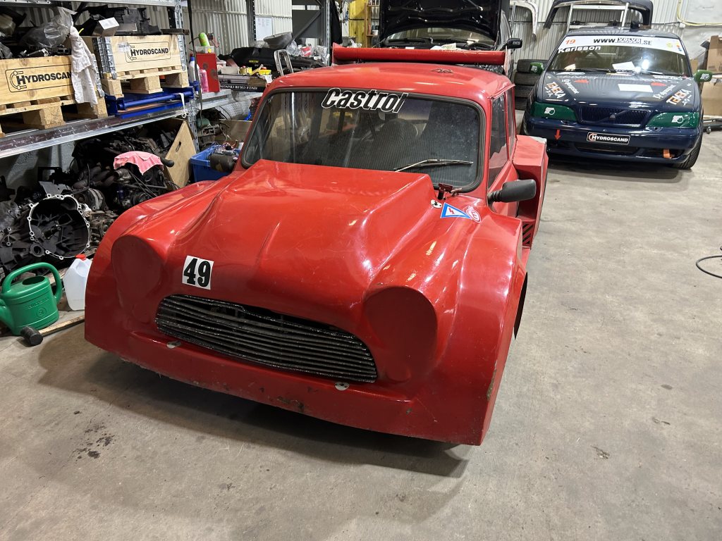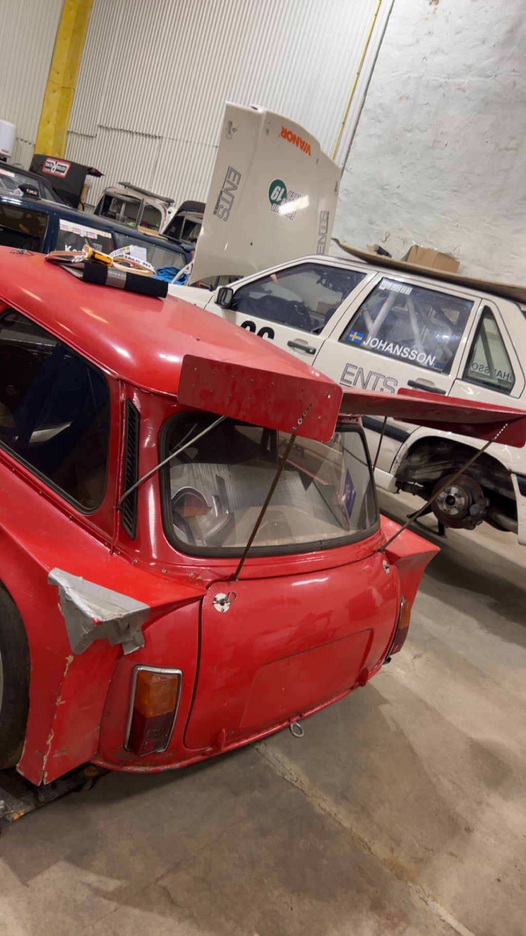 Spec: Rörram Vad som verkar vara volvo bromsok fram, trummor bak Coilovers Plast front i ett stycke Tank + kylare i bak Skärmbreddare i glasfiber, baklucka i glasfiber Grym och stor vinge "Big block" 1380cc maskin, MED Engineering har gjort toppen, lättat svänghjul, en weber (har för mig de var 45a), 286 eller 290 kamaxel. Motorn har tidigare gått i 4timmars serien Växellåda standard 13" hjul, ett gäng slicks och lite regndäck 4 13x8" fälgar på bilen samt 2 13x9" och en 13x7" finns Har även köpt adapters mellan drivaxlar och växellåda Så i princip finns nog det mesta för att få ihop den, MEN allt bör ses över/renoveras utom motor/låda då för det paketet är laddat och raceklart! Finns film om bilen på min youtube också! https://youtu.be/sLLxUJ9IX8s?si=hr7M