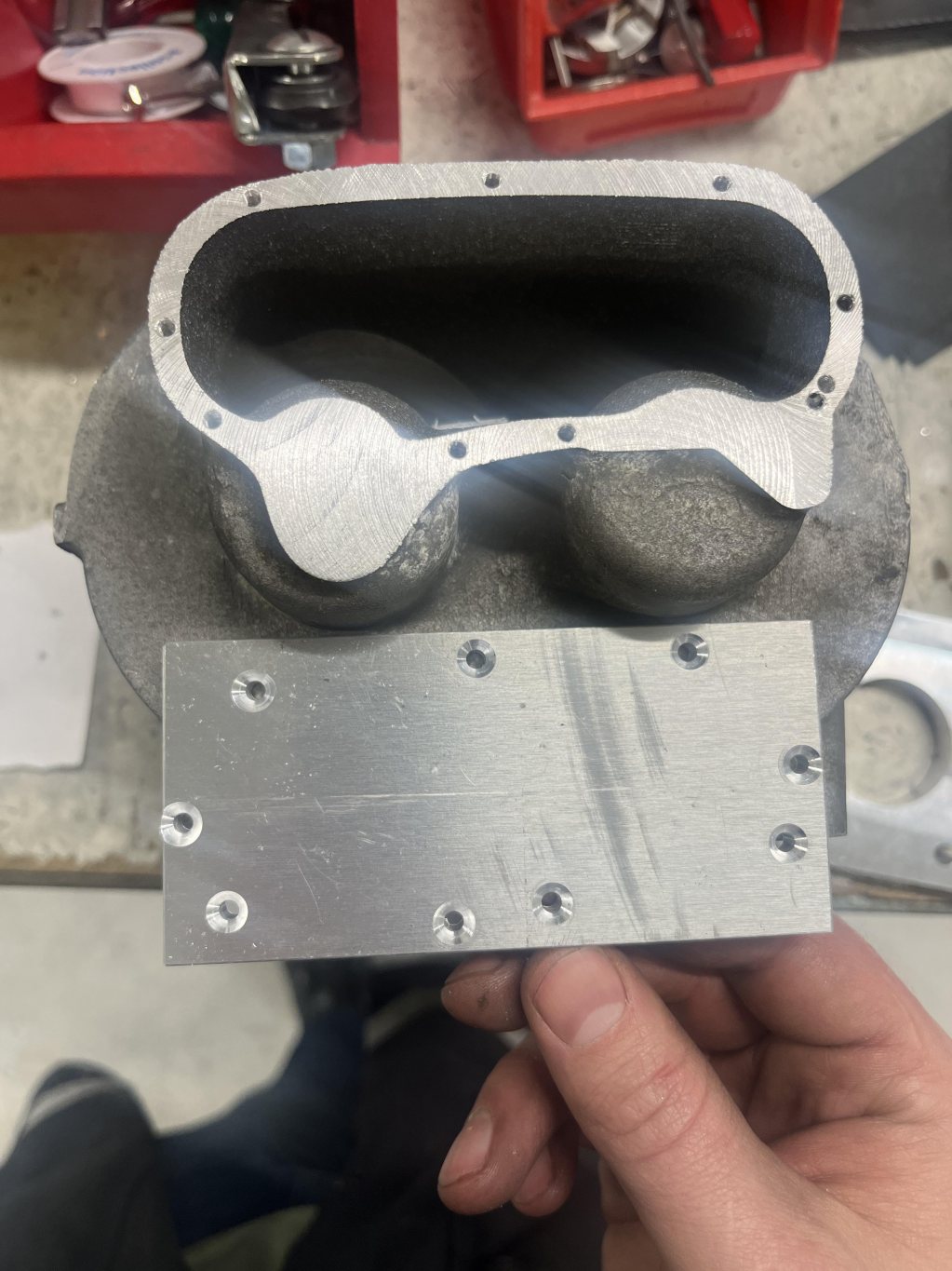 Eftersom insuget frästes i två "steg" så kunde jag måtta in var kompressorn skulle vara och sen kapa flänsen som jag hade gjort för lång. På så sätt så blir kompressorn parallell mot veven.