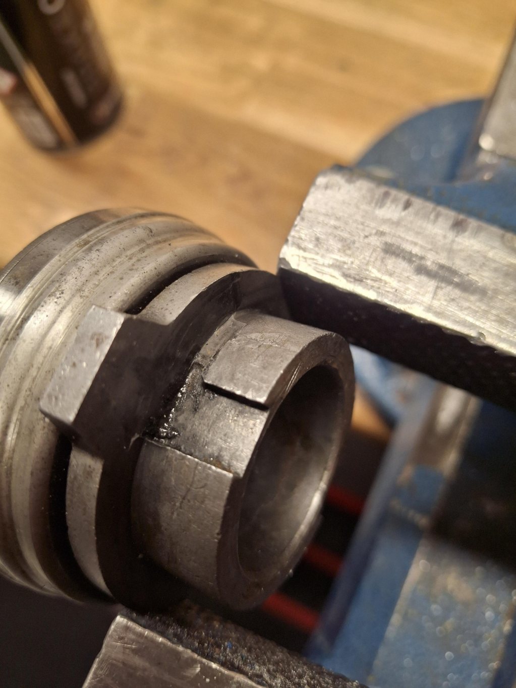 Urtrampningslager, det gamla var sopslut. Funderar på hur det fungerat hela säsongen, nog för att det rasslat men att hållaren var såhär illa trodde jag inte. Hitta ett nytt korrekt var helt omöjligt. 4e försöket hittade jag något som var skapligt rätt, lite modifiering på kopplingsarmen