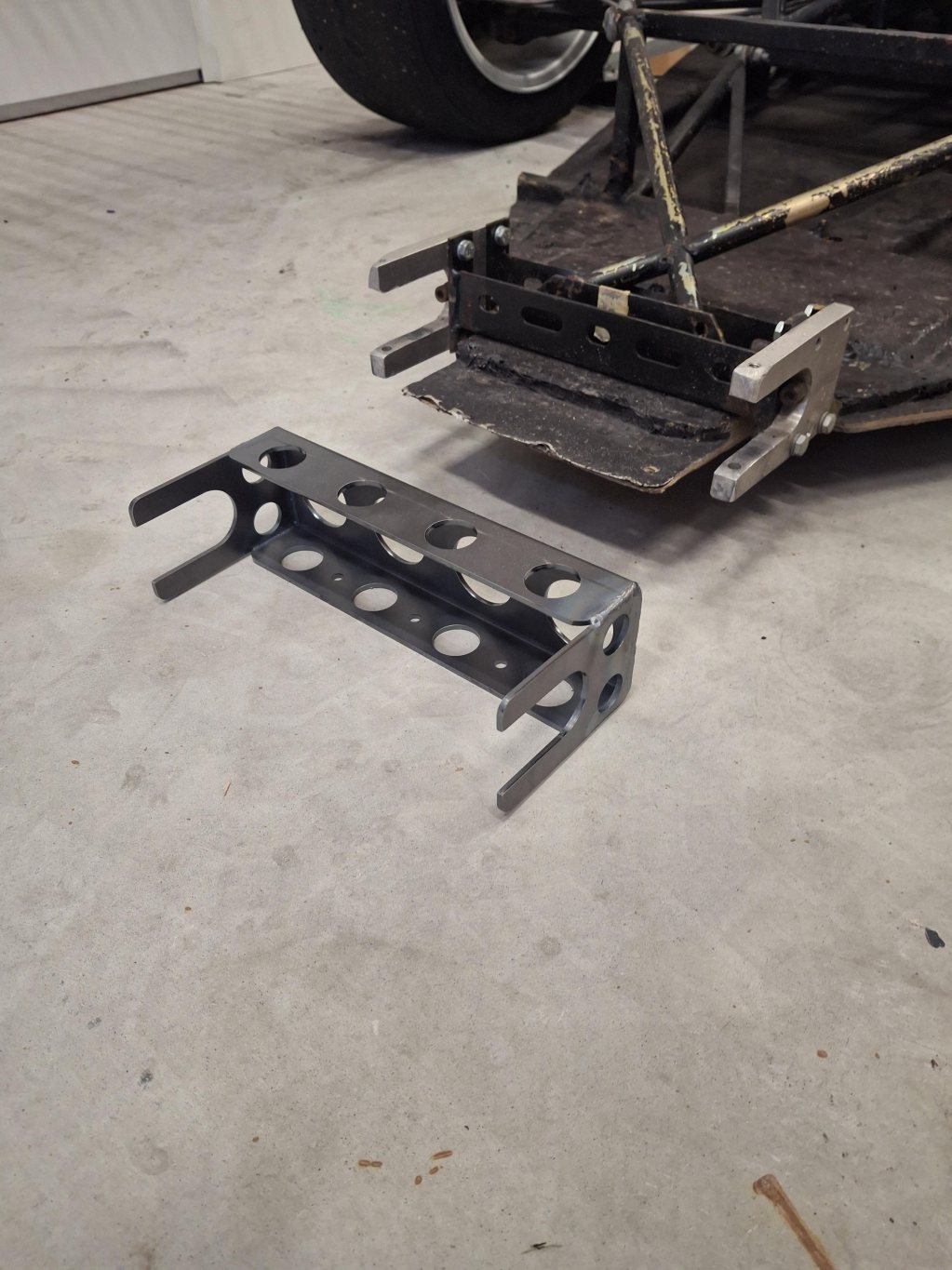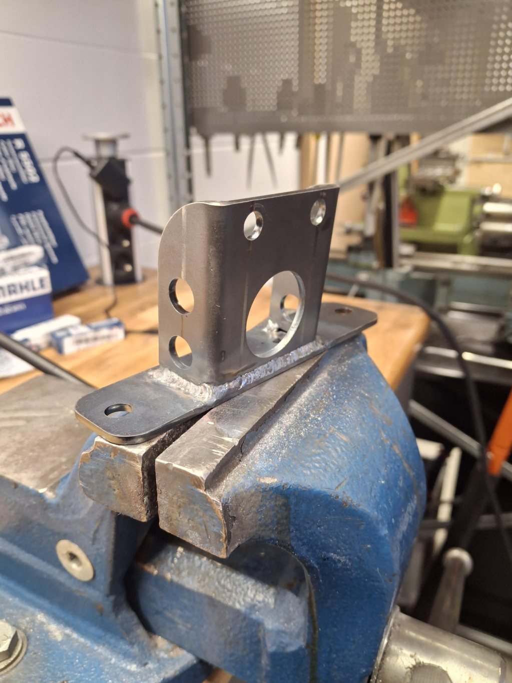 Nytt växellådsfäste, tänkte svetsa det i ramen först, men lådan går att ta ur bakåt om fästet är löstagbart