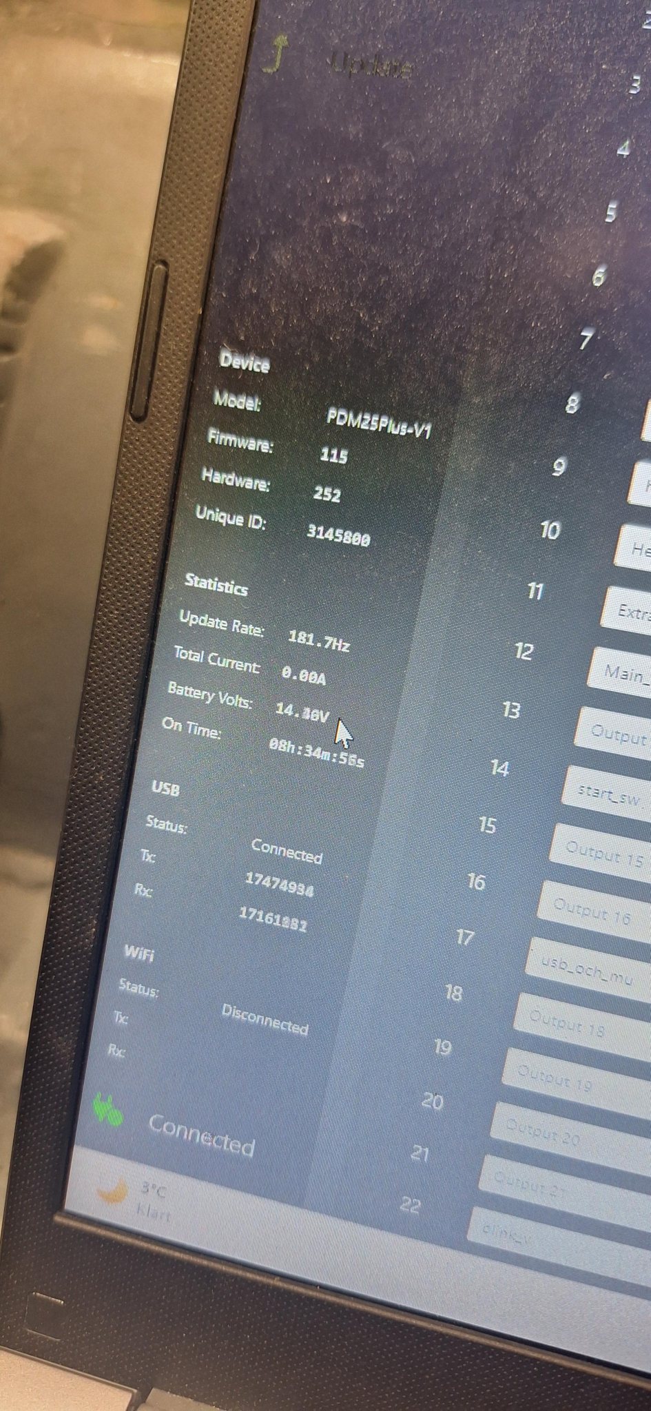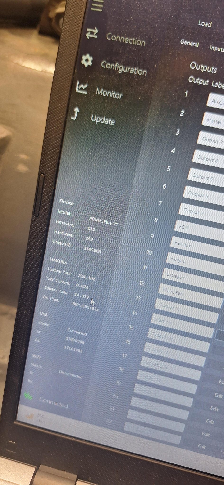 Sen . Tanken då . Jo , HW pdm har inge lågenergiläge som maxx pdm20. Däremot så drar den extremt lite. Med en utgång tänd där spänning bara går till tändningslås så drar den 20mA. Med den utgången avstängd så visar den inbyggda mätaren 0. Men den visar iofs bara tiotal som lägst. Så drar den 9mA så syns inte det . Men jag vill ju dra igång den utgången på ett smidigt sätt. . Å jg tror jag löst det men inte testat . Jag har satt tänkt ingång för dörrbrytare till ett pull upp motstånd (valbart i programvaran) Tanken är att dörrarna ska gå igenom en decoder . Å den behöver inte spänningmatas när man kör signalsidan på pullup. Så det borde var så smidigt som output ON if input <V AND >V Jag vill liksom att det ska vara on off med nyckel å inte klydda med nyckelbrytarr. Dessutom kommer ju dörrarna tända innerbel som dom ska. Ska få till passformen lite böttre på mina lampor bara . _________________ Markus Schneberger Kommentera gärna Austin mini 2,8 AWD https://rejsa.nu/forum/viewtopic.php?t=108448 Leon Cupra 2016 |