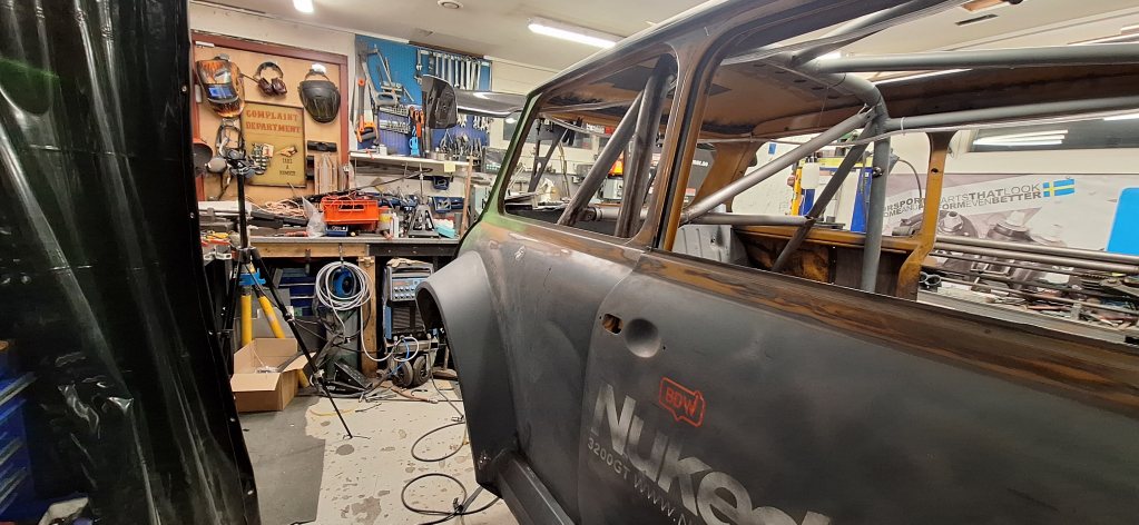 Austin mini "Nuked Mini" bygger grenrör och lallar runt