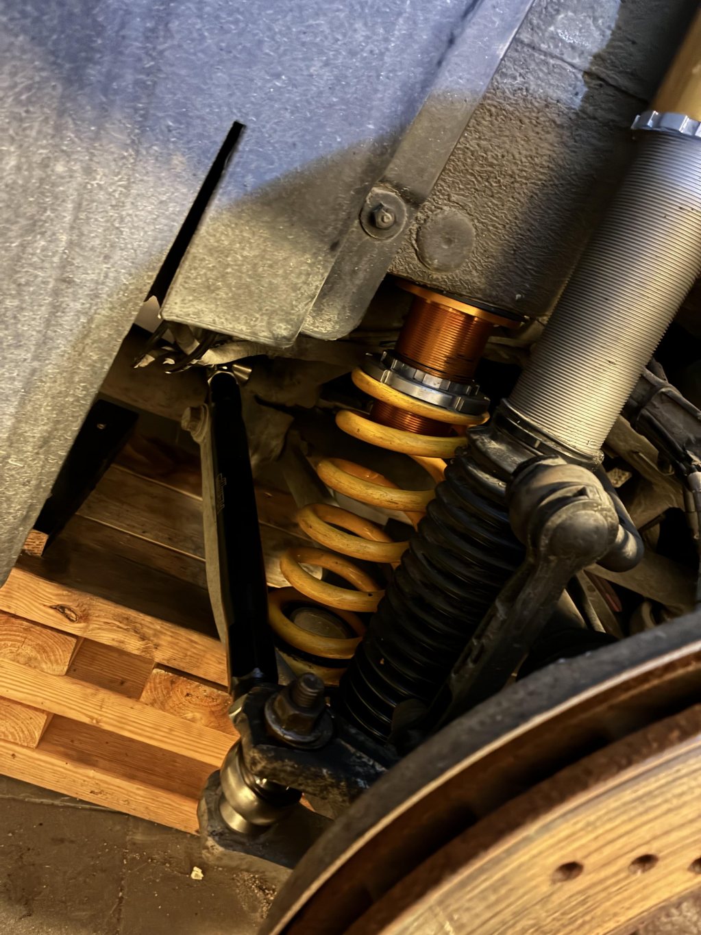 Öhlins Road & Track Millway camberplattor Millways toe stag bak Millways FCAB bussningar fram AP racing BBK fram med endless belägg. König 18 tums hypergram fälgar med R-däck. 265 fram, 295 bak. Autosolutions short shift kit Har monterat grejerna bak. Satte försthöjden så som Öhlins rekommenderar den men bilen blev väldigt låg bak, måste försöka höja lite så det inte tar i om man kör hårt på bana.
