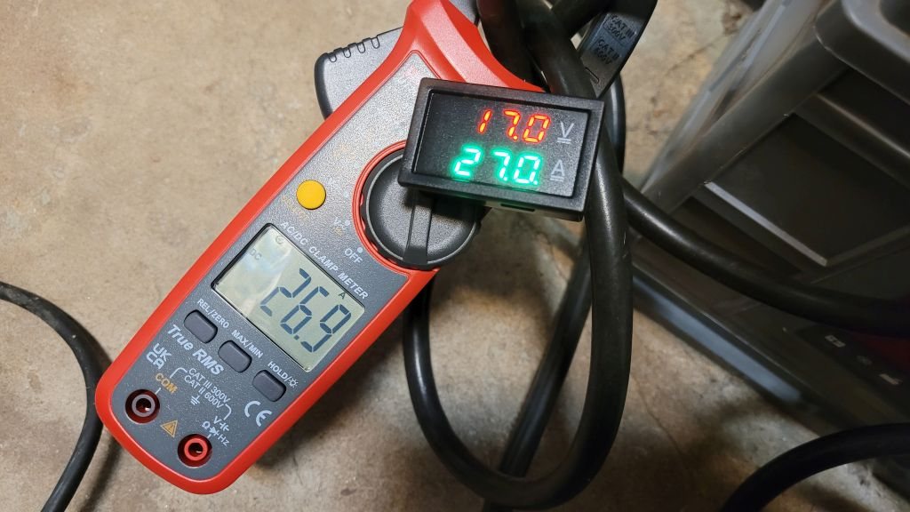 Behövde dock linda kablarna 3 varv igenom mät givaren och köra på snabb laddning med 17volt för att komma upp i lite ampere.. Vid mätning på 1 kabel och runt 1 ampere så visade den lite för lite, men högre ampere visade den lite för mycket.