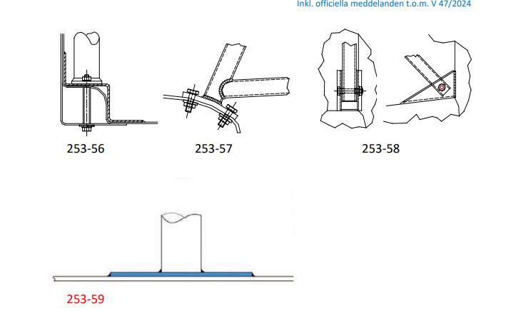 Jodå, det har varit så att det ska vara både infästningsplatta (fastsättningsfot kallar man det) där röret svetsas i och förstärkningsplatta som den sen fästs i. Men det verkar vara ändrat också, så att man nu kan skippa infästningsplattan och svetsa direkt i förstärkningsplattan.