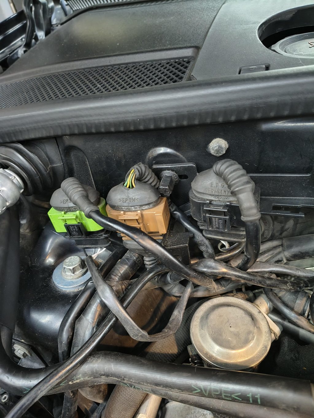 Passar på och byter tändstift när man ändå kommer åt. Lämnade 3 tändstift till imorgon, dumt att göra allting på en gång. Eller så blev jag så trött när jag insåg att det går ett rör rakt ovanför 3 tändspolar... Ett litet bekymmer sedan i våras är en felkod, laddstyrningsventil avbrott krets. Men det hittade jag nog en lösning på nu när jag kom åt ventilen, jag hade glömt att montera tillbaka kontakten när jag demonterade laddstyrningsventil och ett fäste för byte av vaccumslangar. _________________ Roland Johansson |