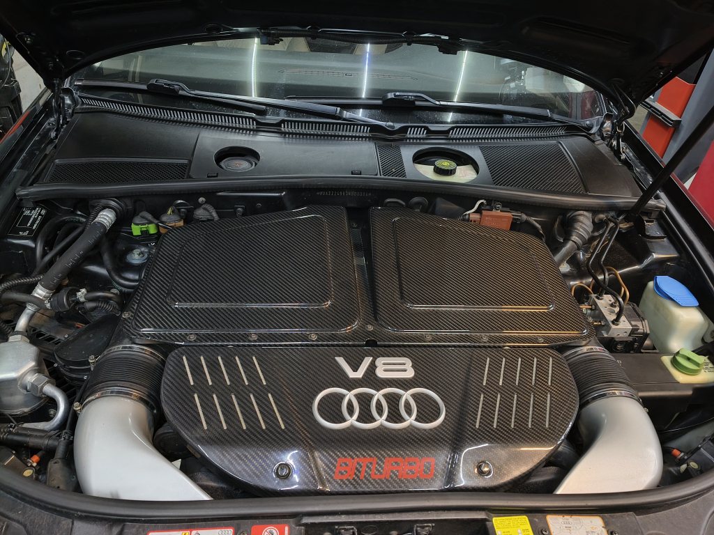 Tror ovanstående rad sammanfattar allting bra. Det händer att man vill, men inte riktigt orkar eller kanske inte hinner. Och så finns det saker som skaver, lite eller mycket. Bilen i sig har fungerat, och fungerar bra. Provat logga lite saker som laddtryck med diagnosdator, fått fram drygt 1 bar laddtryck från omkring 2000 rpm upp till ungefär 4000 rpm, sedan var det inte läge att kolla display längre. En enkel koll på original vridmomentskurva för grundmotorn, 4.2l v8 säger 350Nm vid 2000 rpm ökandes till ungefär 420Nm vid 3000 rpm och håller detta moment till 4300 rpm där det sakta sjunker till 350Nm vid varvstopp. Ett bar laddtryck borde vid enkelt överslag ge nästan dubbla vridmomentet, kan förklara viss rivighet. Men sedan kommer det till skav. Och inte roligt skav. Någon tidigare ägare har låtit klä om ratten med mocca/alcantara eller något liknande, blir som ett kletigt skumgummi på långkörningar.