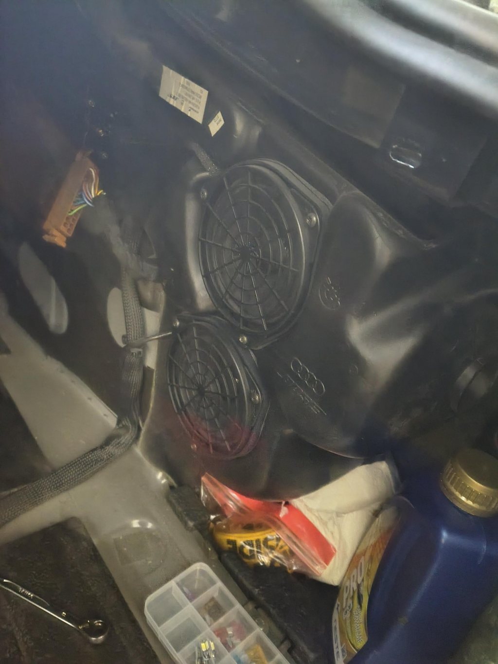 Delar kommer behållas, högtalarna i dörrar kommer finnas kvar, men Bose slutsteg ska ersättas. Nu delas högtalarna aktivt, och så kommer jag fortsätta göra men med ett förhoppningsvis bättre slutsteg. Påbörjat installation av bättre slutsteg etc, känns som förutsättningarna med batteri mindre än en halvmeter ifrån tänkt placering är smidigt. Och att original slutsteg sitter där jag kommer installera nästa, så bara kontaktera om så är det färdigt.