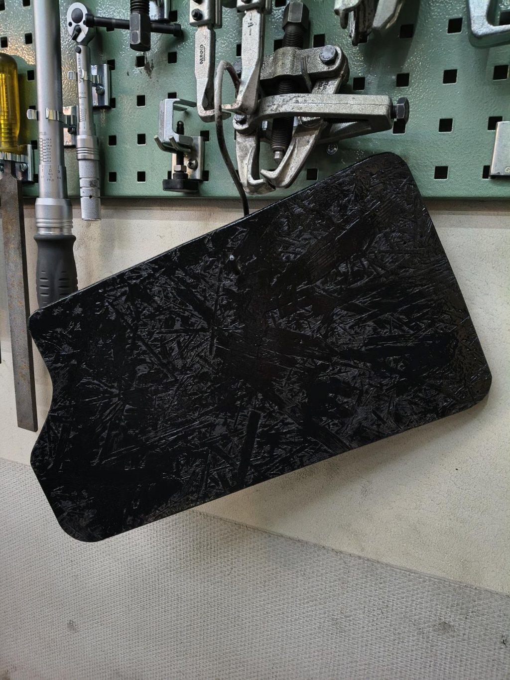Så, stereo borta, även täcklock i kolfiber. Och en del skinn från mina fingrar.