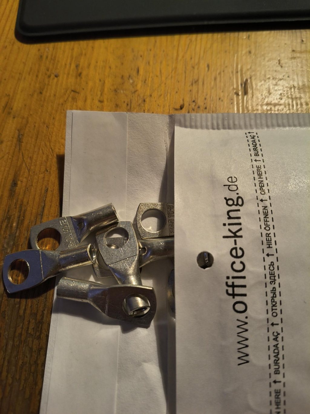 Suck, bara beställa från en annan leverantör. Skulle anlänt senast 19 november, när jag häromkvällen klagade så hittade de plötsligt spårningsnumret. Delarna låg och väntade på att leverantören skulle betala tullavgift. Nu har de betalt och tullen har släppt delarna till postmords säkra service, så om inte oturen fortsätter kommer de nästa vecka. Men gör egentligen inte så mycket, jag har ju massa strömmatningskablar etc som ska dras, kontakteras etc. Kollade på lokala BRL-butiken och enligt hemsidan hade de ringkabelskor med 8mm anslutning för 10mm2 kabel, men på plats enligt expediten hade de inte något sådant. Det enda liknande han kunde få tag på var krympslang 10mm