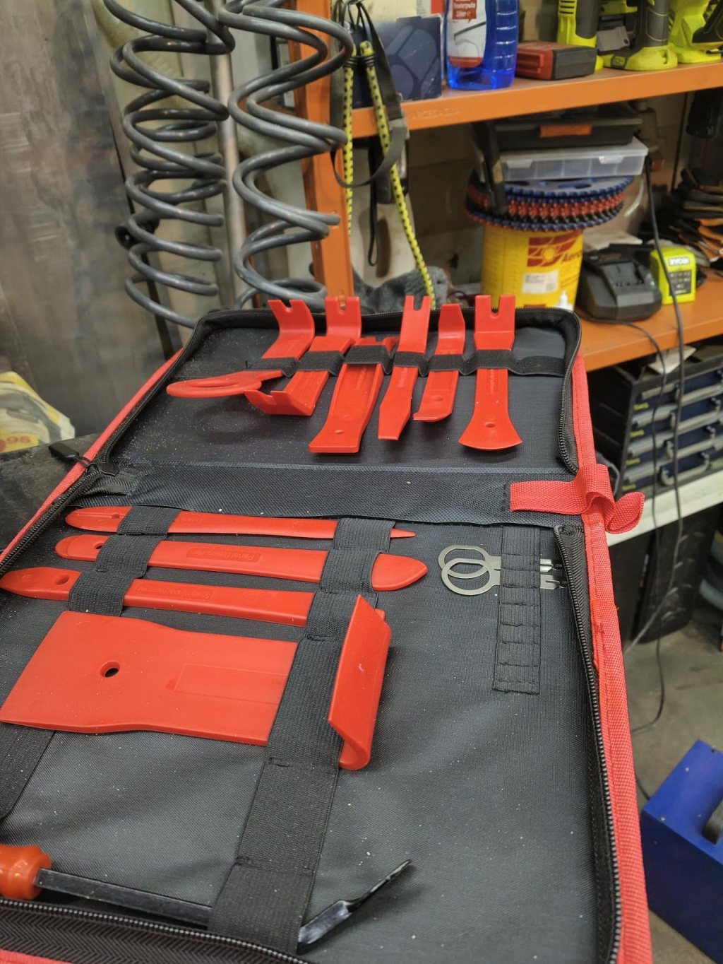 Har beställt TPMS givare för sommarhjulen också, så någon gång i vinter ska dessa monteras. När jag plockar ner hjulen kommer jag nog vaxa upp fälgarna ordentligt innan de hängs upp på vidare förvaring. Skrapan fick jag med i ett ebay-fynd, en sats med verktyg för demontering av inredning i bilar. Klart värd 220:- inklusive frakt och fin väska.