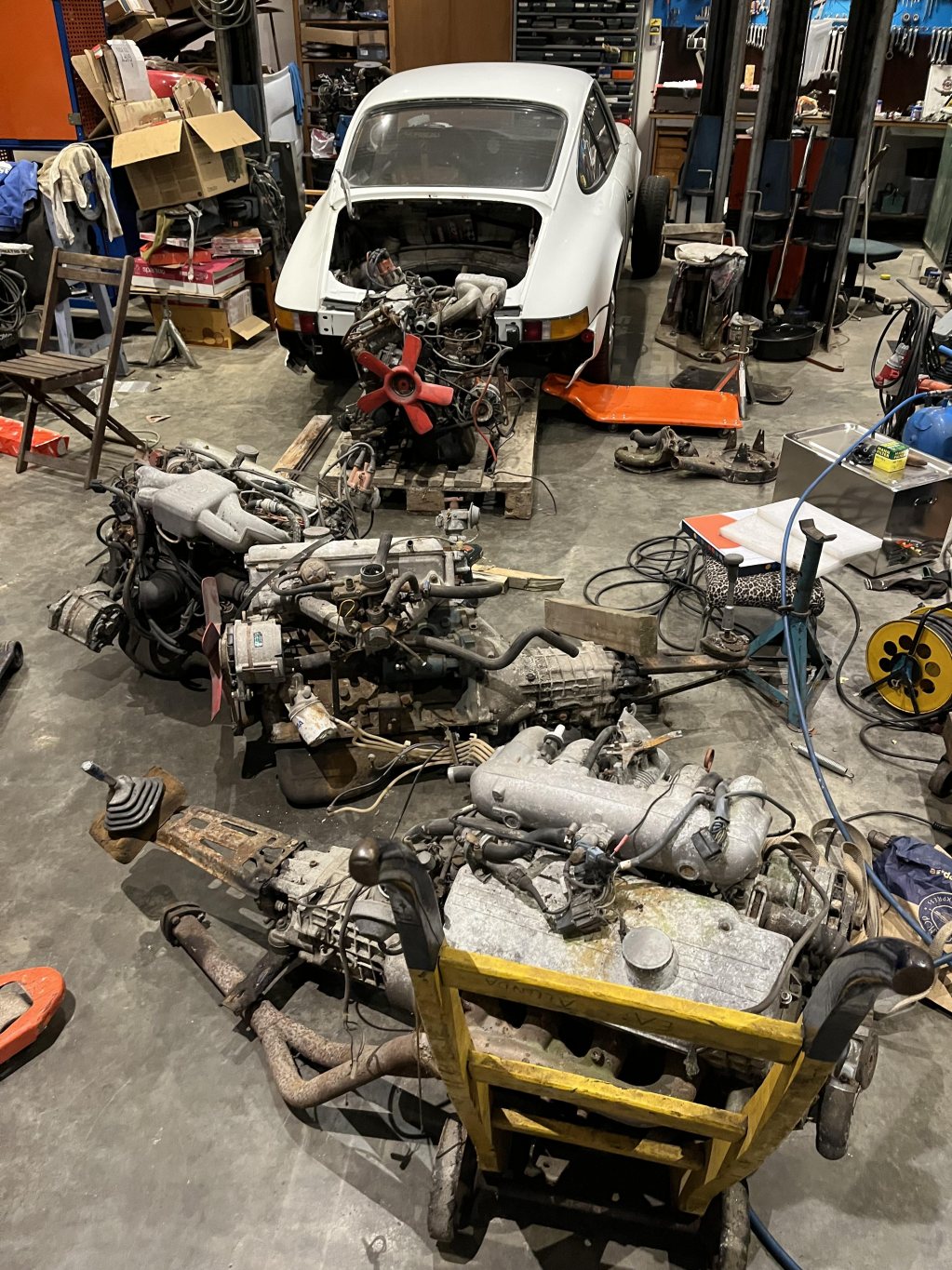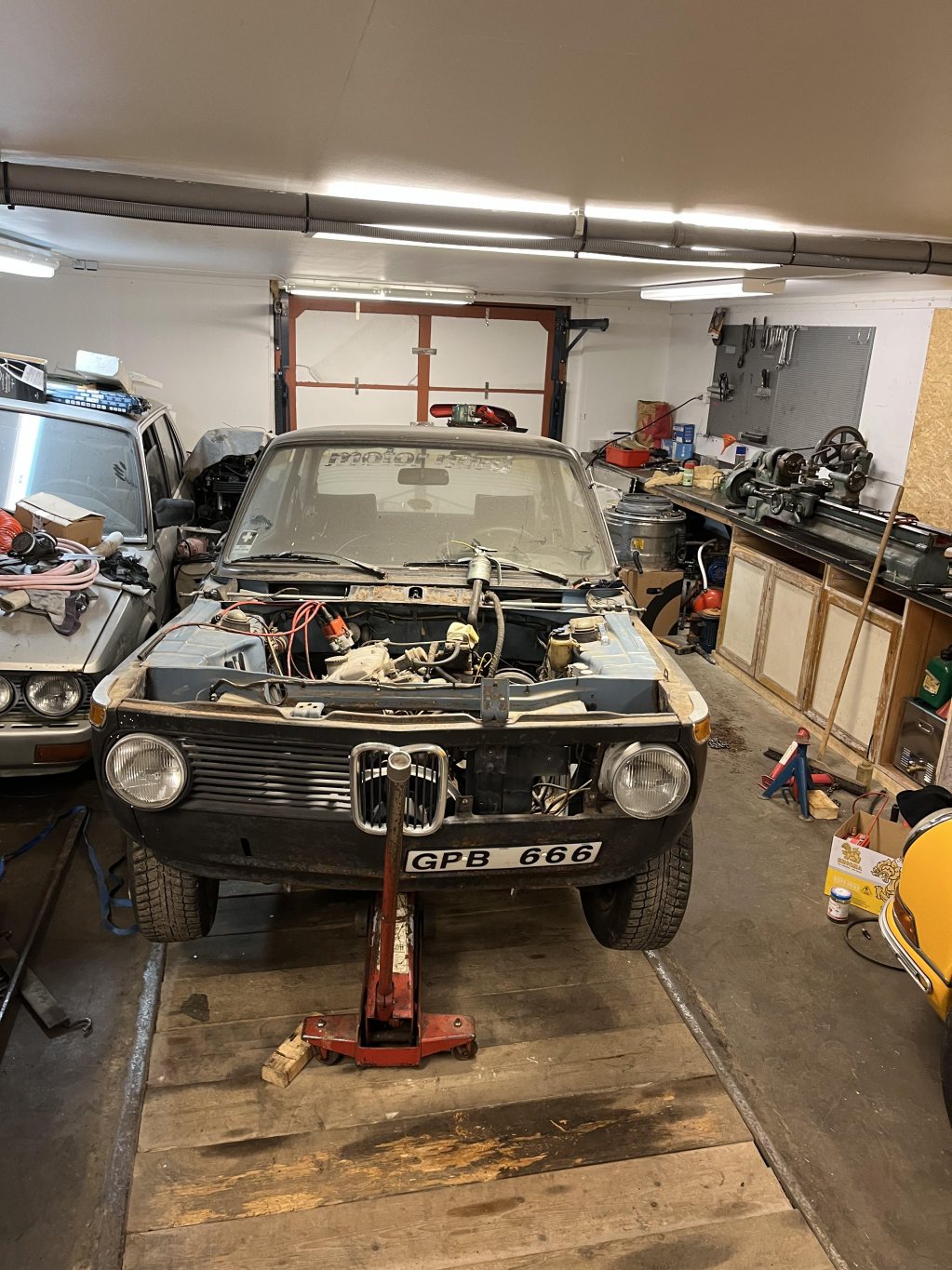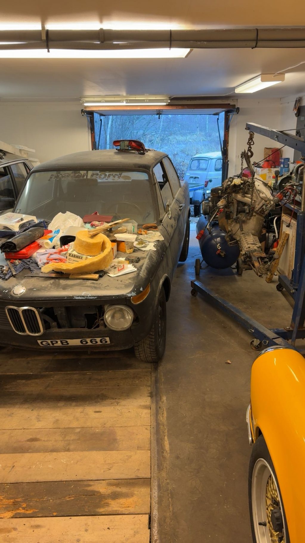 Hängt här sedan 19 Mar 2003så det känns som läge att starta en liten tråd. Intresset för bilar har alltid varit hög prioriterat i mitt liv. Inte tvätta, vaxa, stereo och extraljus, utan mer rensa, lätta, turbomata. För att sedan tävla i slalom. Det började med BMW-02 från körkort 10-15år tills första 911an 2003 efter det så blev Porsche i fokus. Nu på senare år så har även gamla Renaulter blivit kul. Jag är en samlare så de flesta av bilarna jag gillar eller gillat är kvar. Så istället ör att handla på blocket eller dylikt så har jag tittat runt i mina förråd och gömmor för ett snabbygge. En 02a som gått med turbo för tiotalet år sedan blev kandidaten då den har många bra delar redan monterat. Den blev ståendes efter att jag skjutit toppackningen och troligen ett ringland. Plockade in sex M10 motorer som förvarats på pall utomhus under pressening alldeles för många år. In med dem i värmen och utvärdera lämplig kandidat. Alla motorer gick runt men bara en var förgasarmotor med -02 tråg Lite snabbfix med brytartändningen så fanns det gnista några dropppar bensin i fugger så rappade den igång på garagegolvet