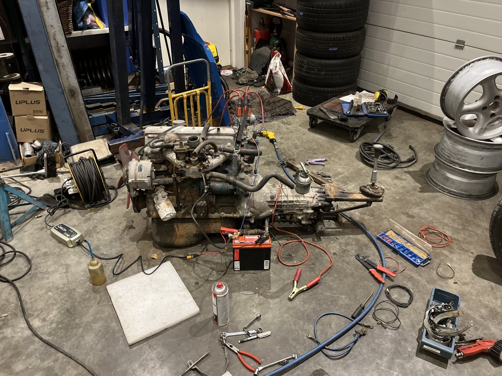 Projektet fortlöper i sakta mak. Lastade Satt ett 3" system på bilen sen turbo versionen samt 5-växlad od låda, så växellåda, avgas grenrör etc plockades bort och ett spagettirör som suttit ihop med resterade avgassystem monterades. Efter lite lirkande med kranen och domkraft så trillade motor och låda ihop